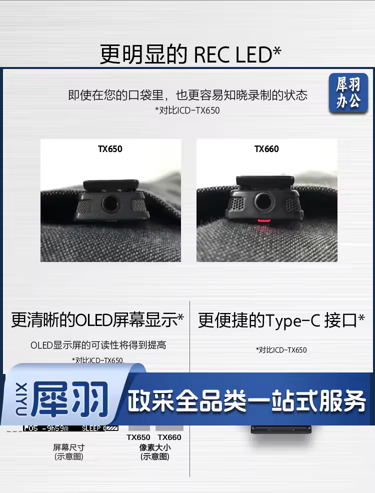 商品名称:索尼ICD-TX660 商品编号:100024680516 商品毛重:120.00g 商品产地:中国大陆 内存容量:16GB 材质:金属 存储卡类型:不支持扩展卡 适用场景:学习 屏幕类型:非触摸屏 形状:棒棒型 麦克风数量:三向立体 功能:录音