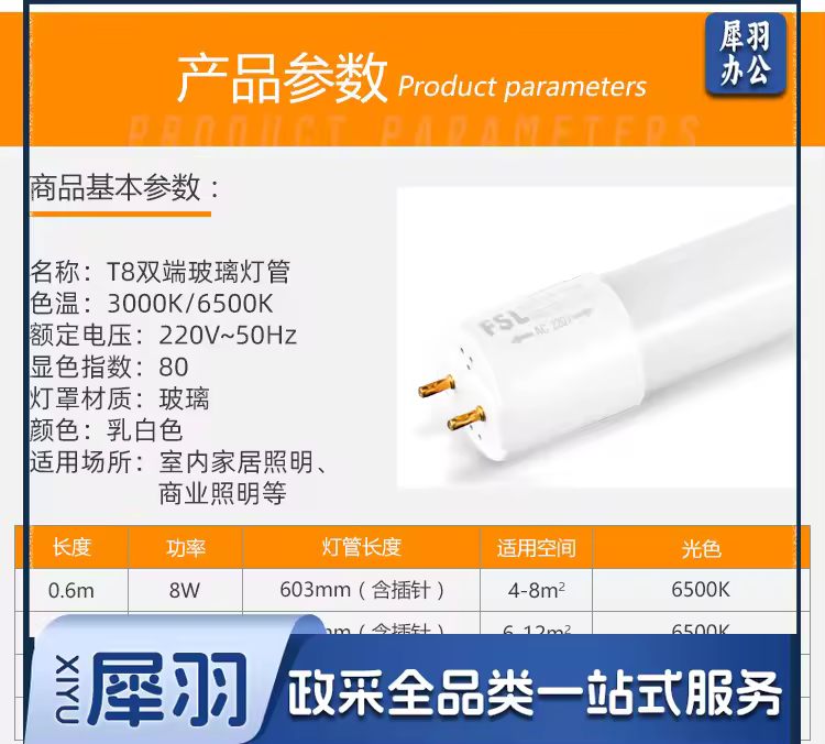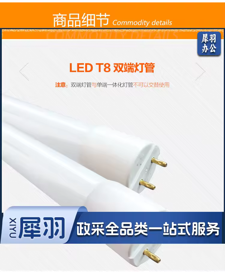 佛山照明(FSL) LED灯管节能灯T8双端长1.2米16W日光色6500K 经典单只装