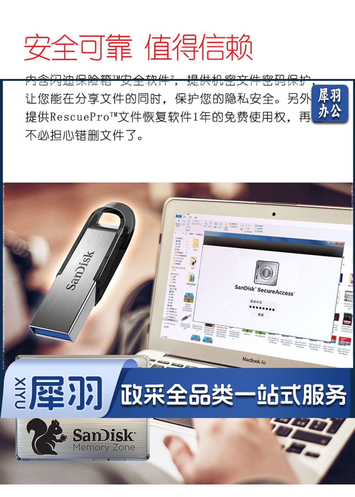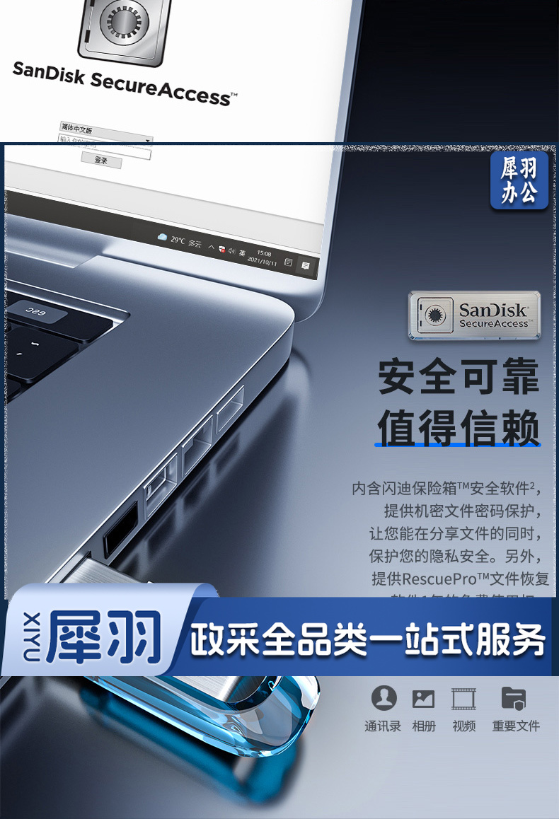 闪迪 (SanDisk) 128GB U盘CZ73 安全加密 高速读写 学习办公投标 电脑车载 大容量金属优盘 USB3.0