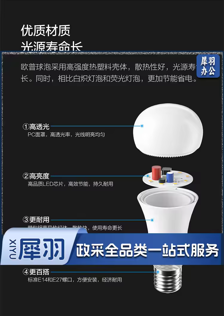 欧普(OPPLE)LED灯泡节能灯泡 E27大螺口家用商用功率光源 8瓦白光球泡 3只装
