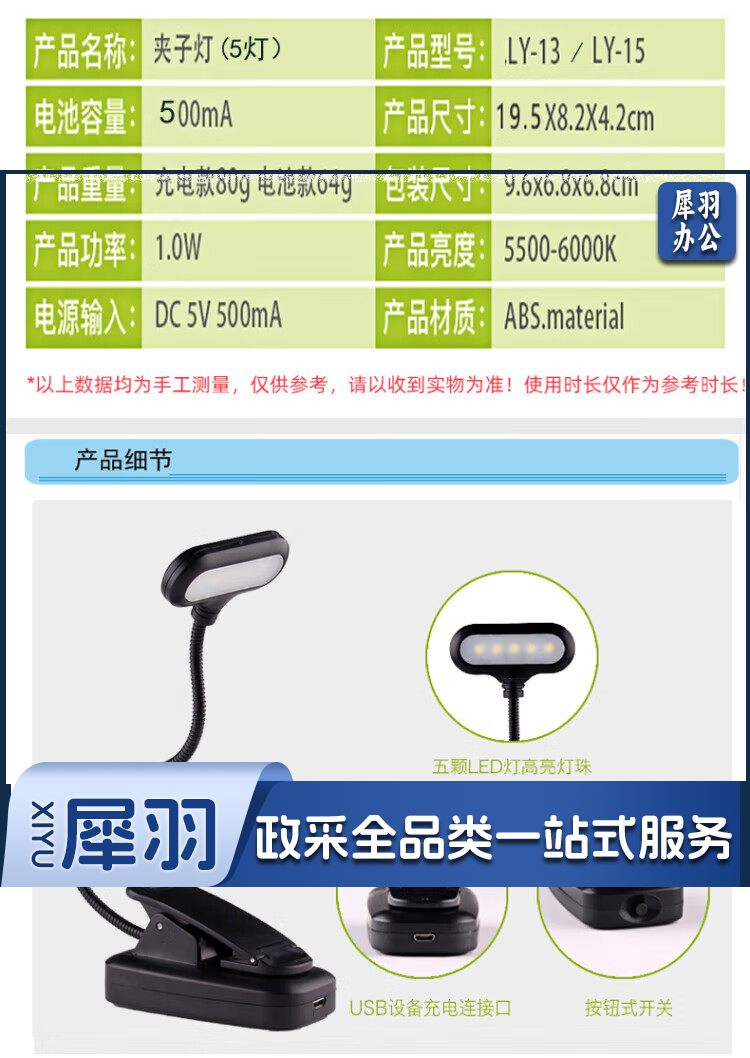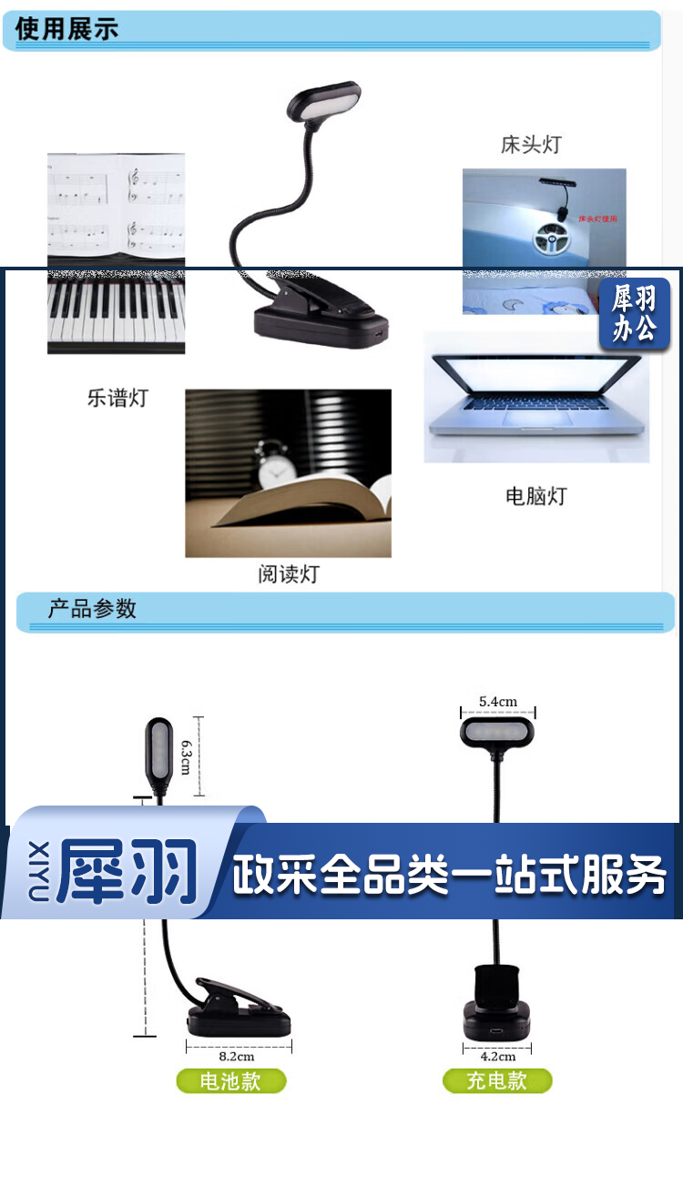 耐巧夹子书夹灯夹式乐谱架灯金属软管LED灯宿舍学习床头阅读台灯 横头电池款