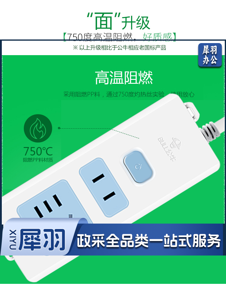 公牛(BULL)新国标插座/插线板/插排/排插/接线板/拖线板 2位总控全长1.8米 GN-612