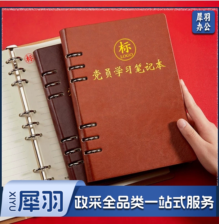 活页式党员学习笔记本A5 党员会议记录本党员本(棕色)