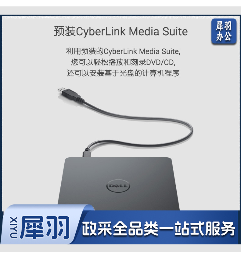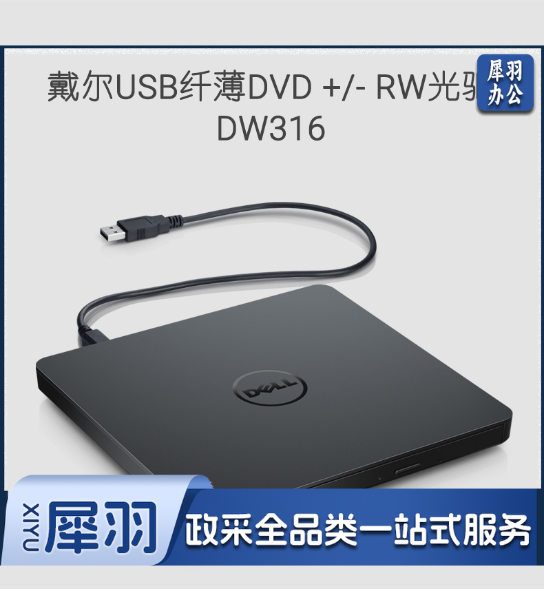 戴尔(DELL)DW316 外置光驱 刻录机 移动光驱 外接光驱 DVD/CD光驱 笔记本/台式机通用 刻录光驱
