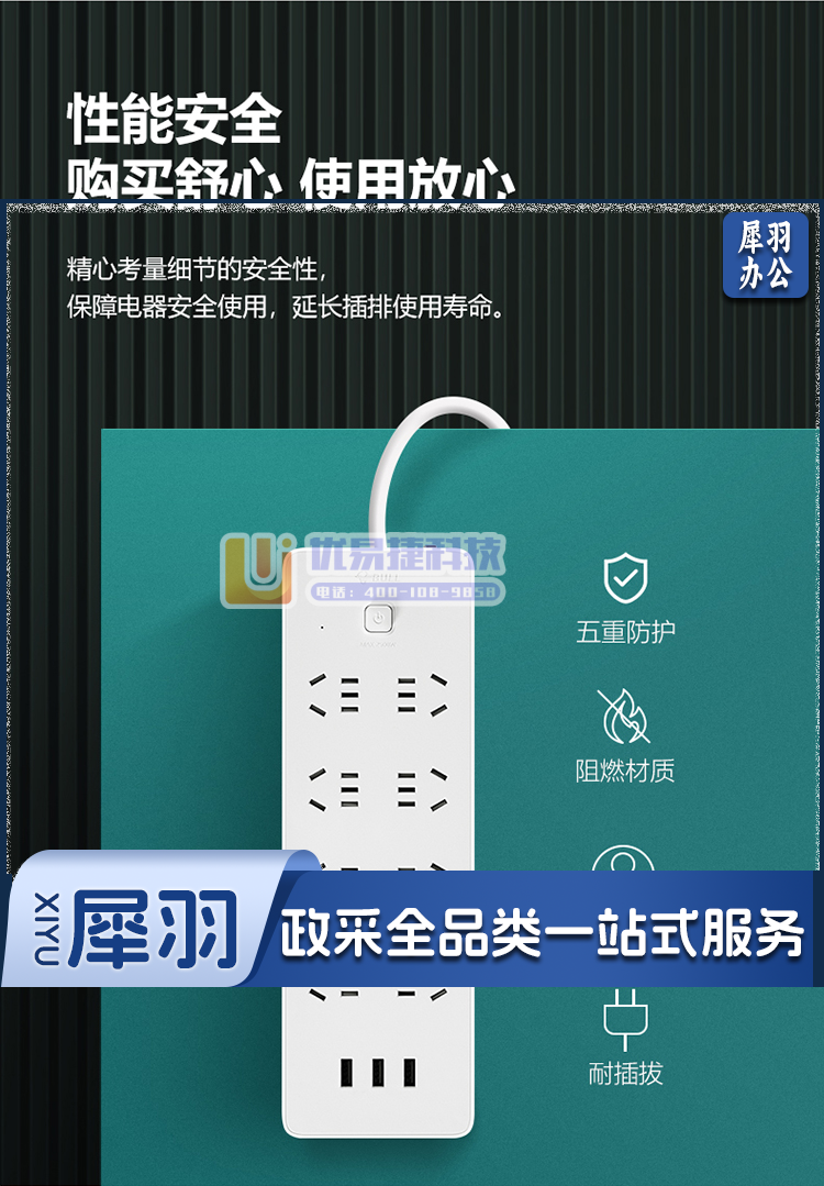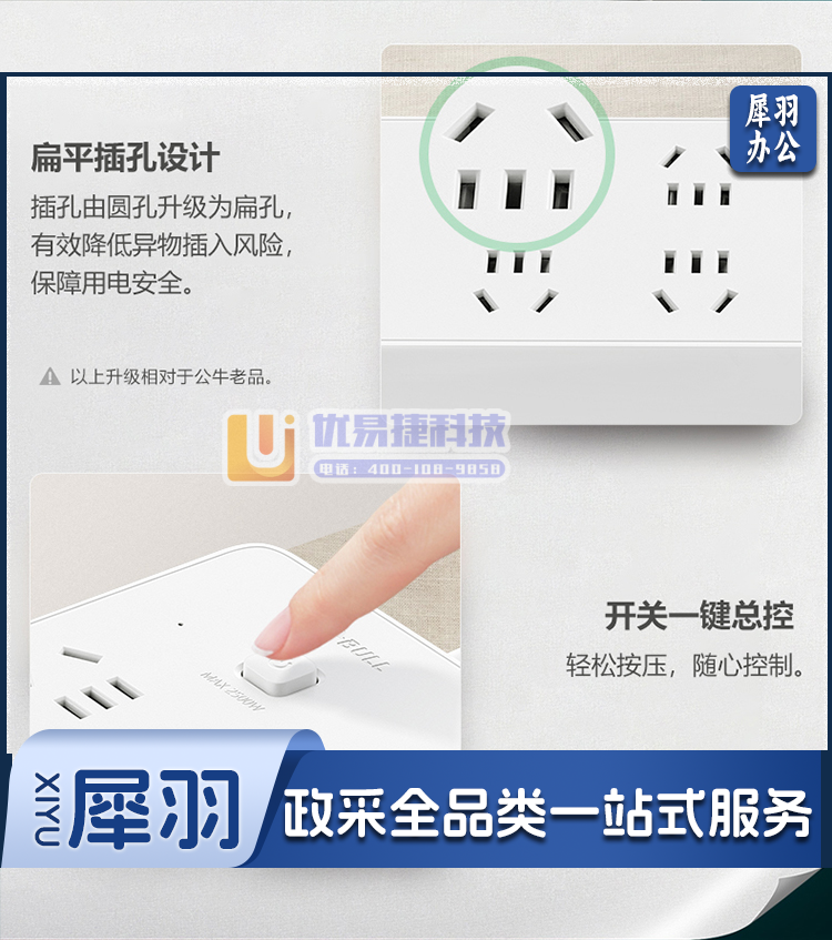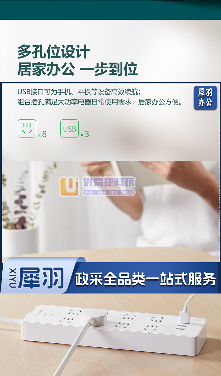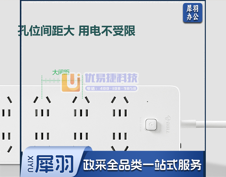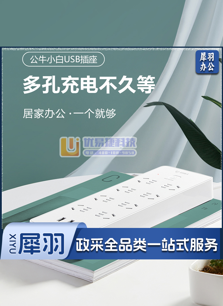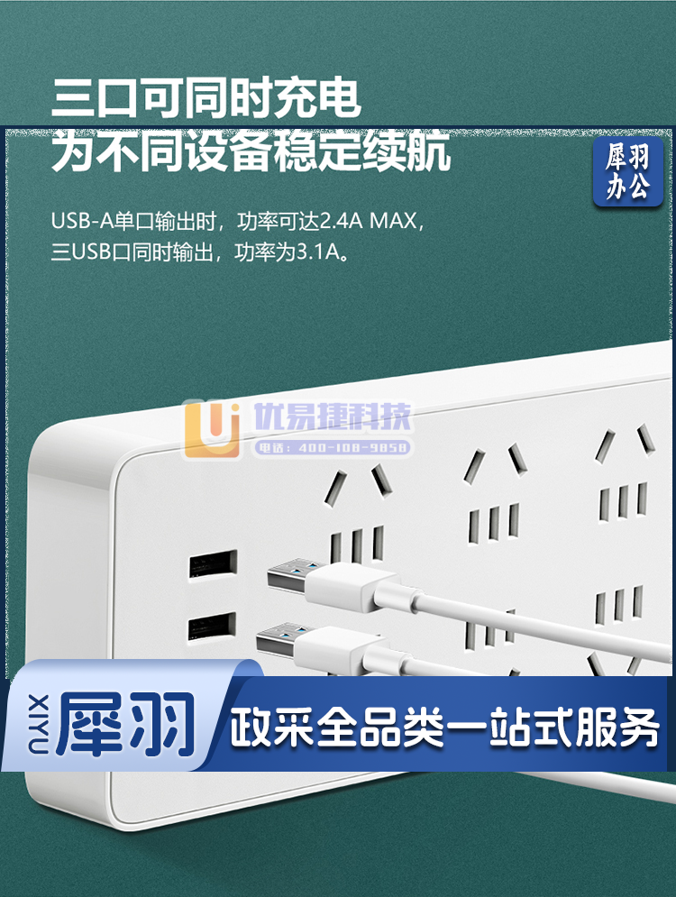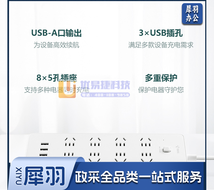 公牛(BULL)超功率保护 新国标公牛小白USB插座/插线板/插排/排插 GNV-UUN158 3usb接口 8孔全长5米