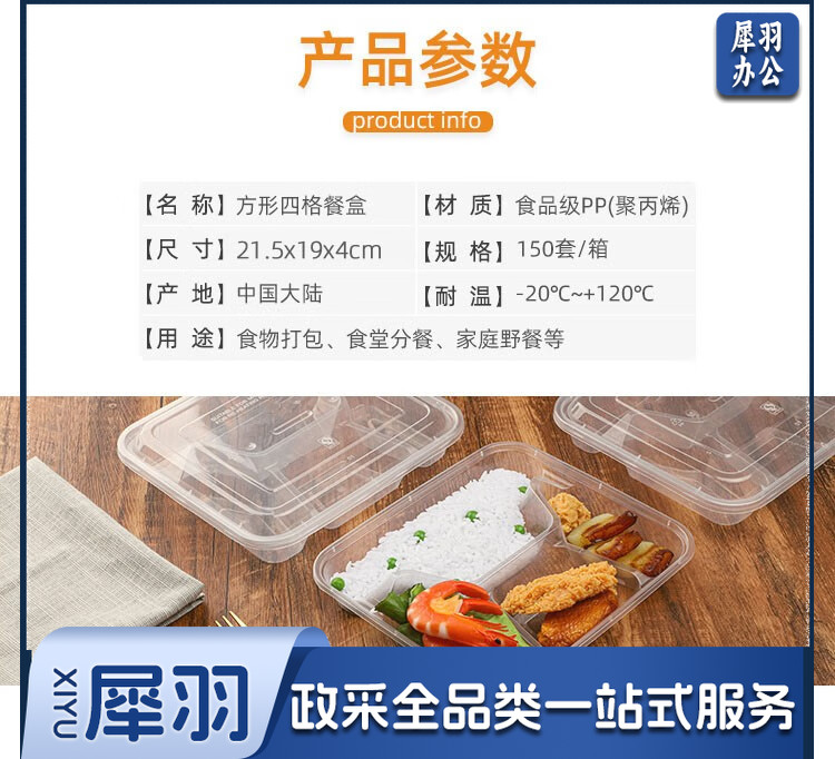 一次性餐盒高盖四格 带盖透明(单位:箱)
