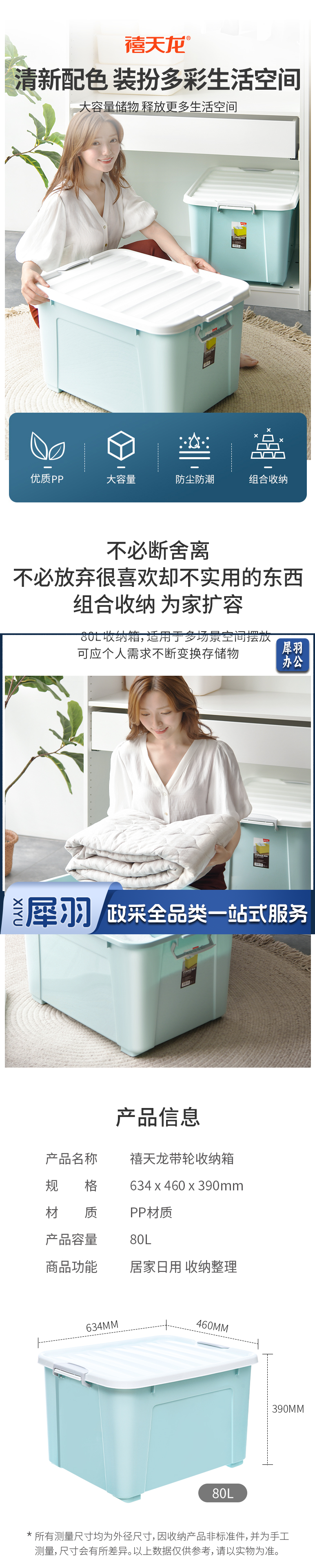 禧天龙(Citylnog) 6155 收纳箱整理箱 带滑轮 80升 634*460*390