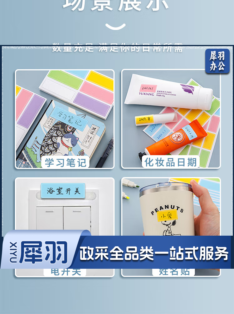 不干胶标签贴纸分类彩色标签贴手写自粘姓名贴防水写名字的贴纸10张/包 小号 3袋起售
