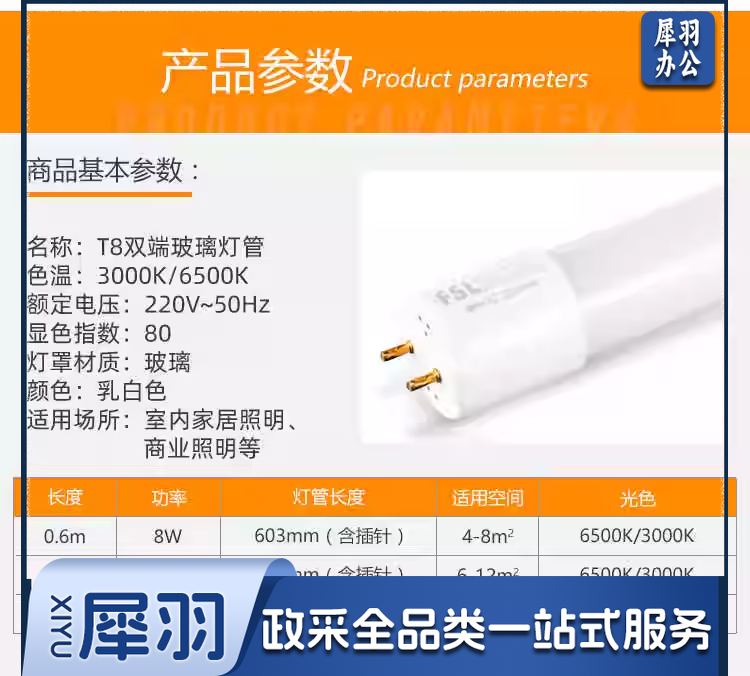 佛山FSL T8LED灯管 220V-12W 65K 0.9米 双端标准