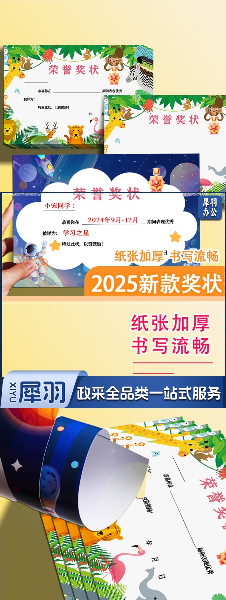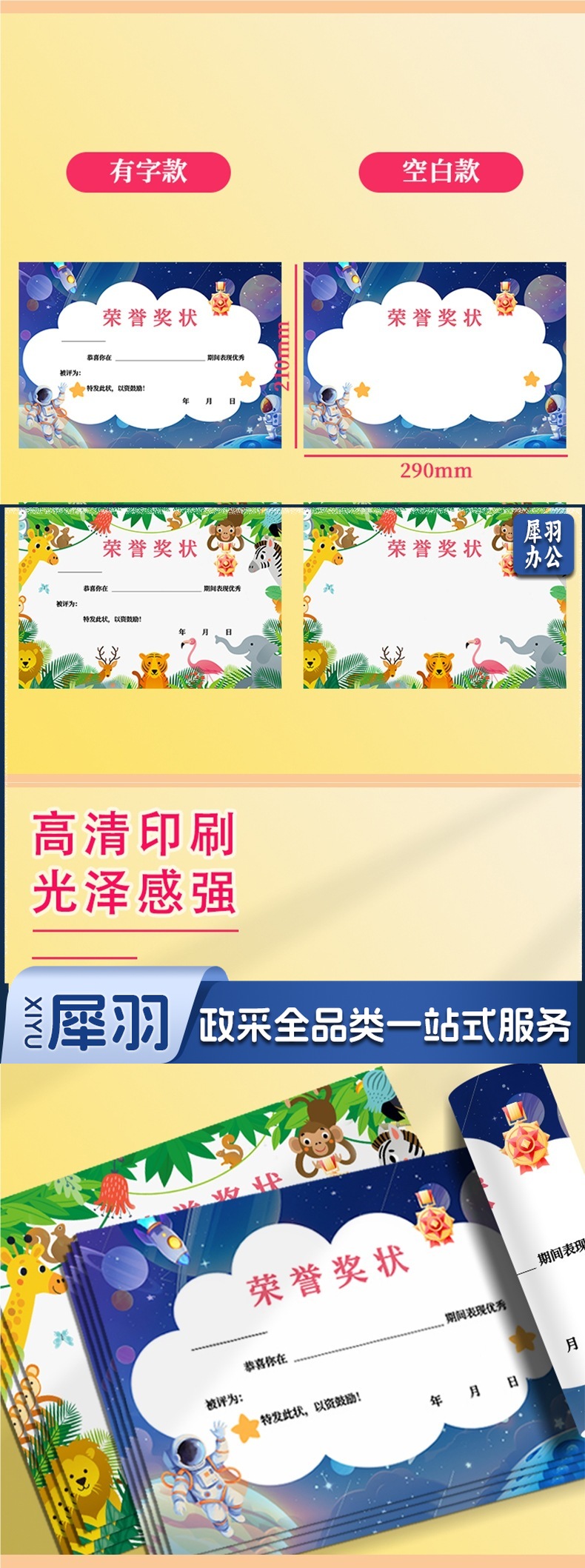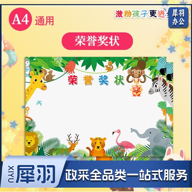 奖状a 4可打印卡通可爱创意小奖状纸中小学生通用表扬信幼儿园儿童【A 4/有字】丛林-A 4尺寸