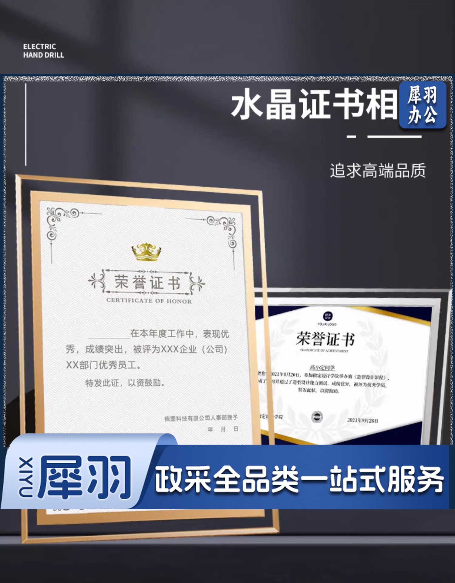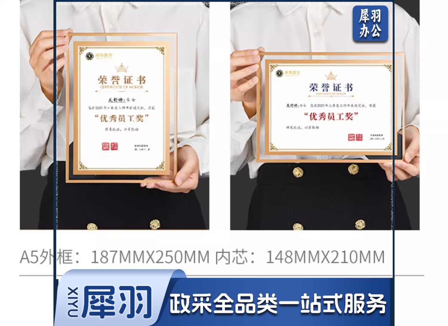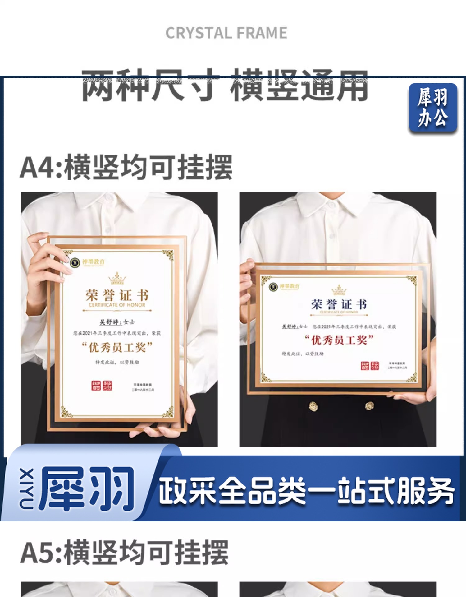 a 4相框营业执照框挂墙证书框摆台玻璃水晶相框A 4标牌授权相框玻璃(A5双边款-金色(带内页套餐)148*210mm)
