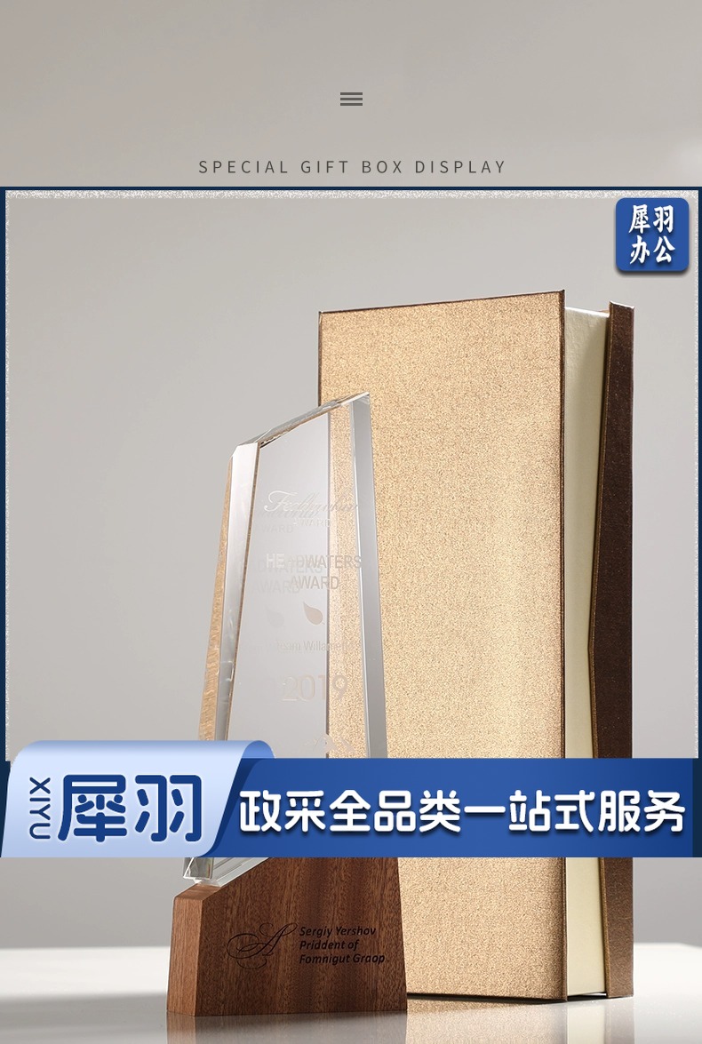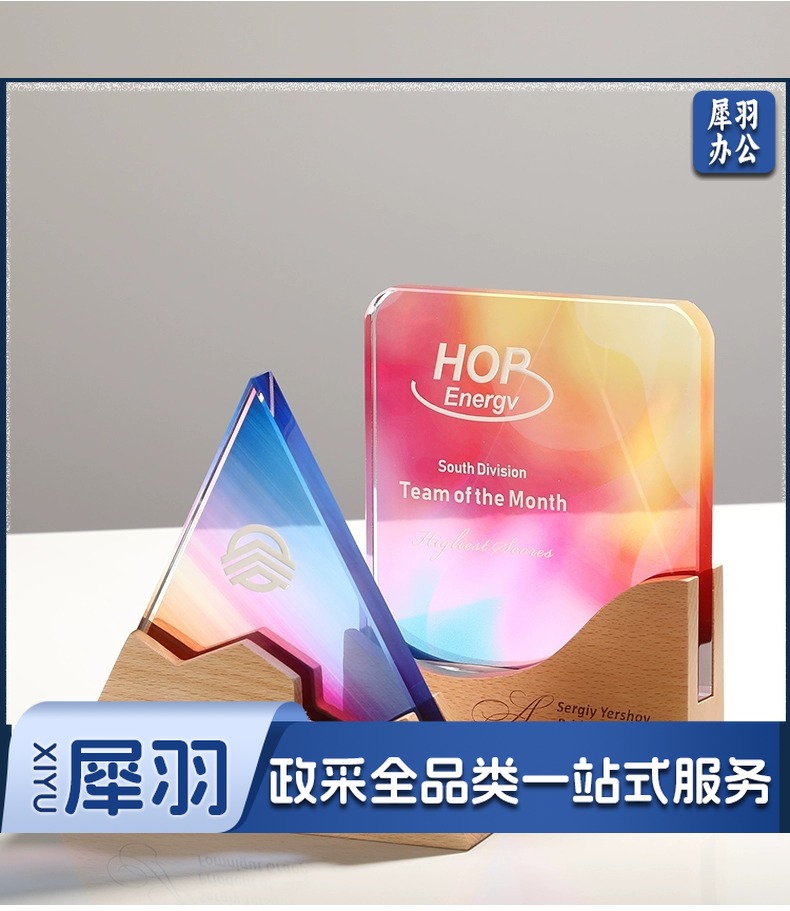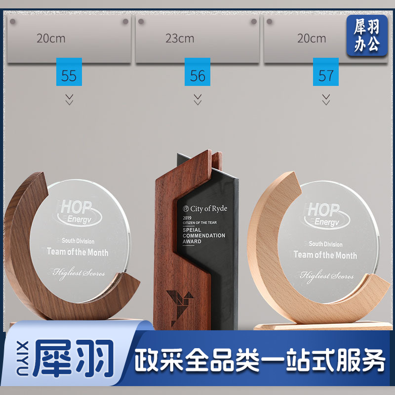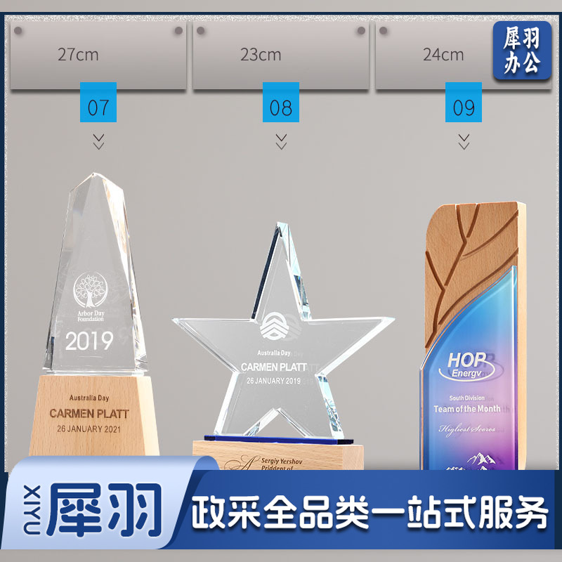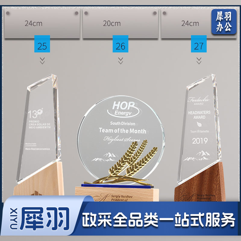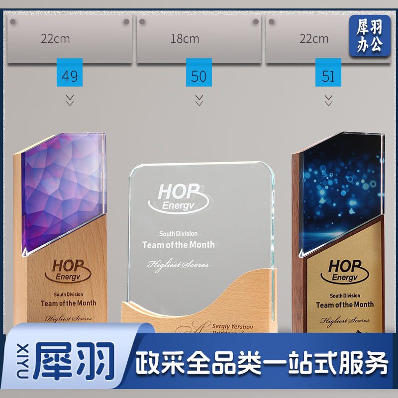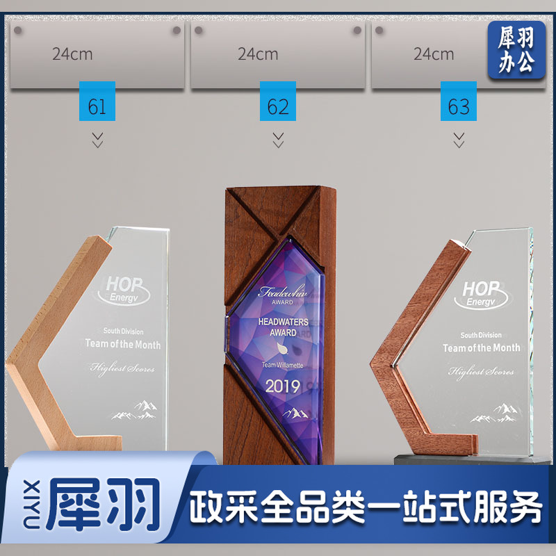 实木水晶奖杯定 制创意奖牌定 做优秀员工光荣退休运动会纪念品