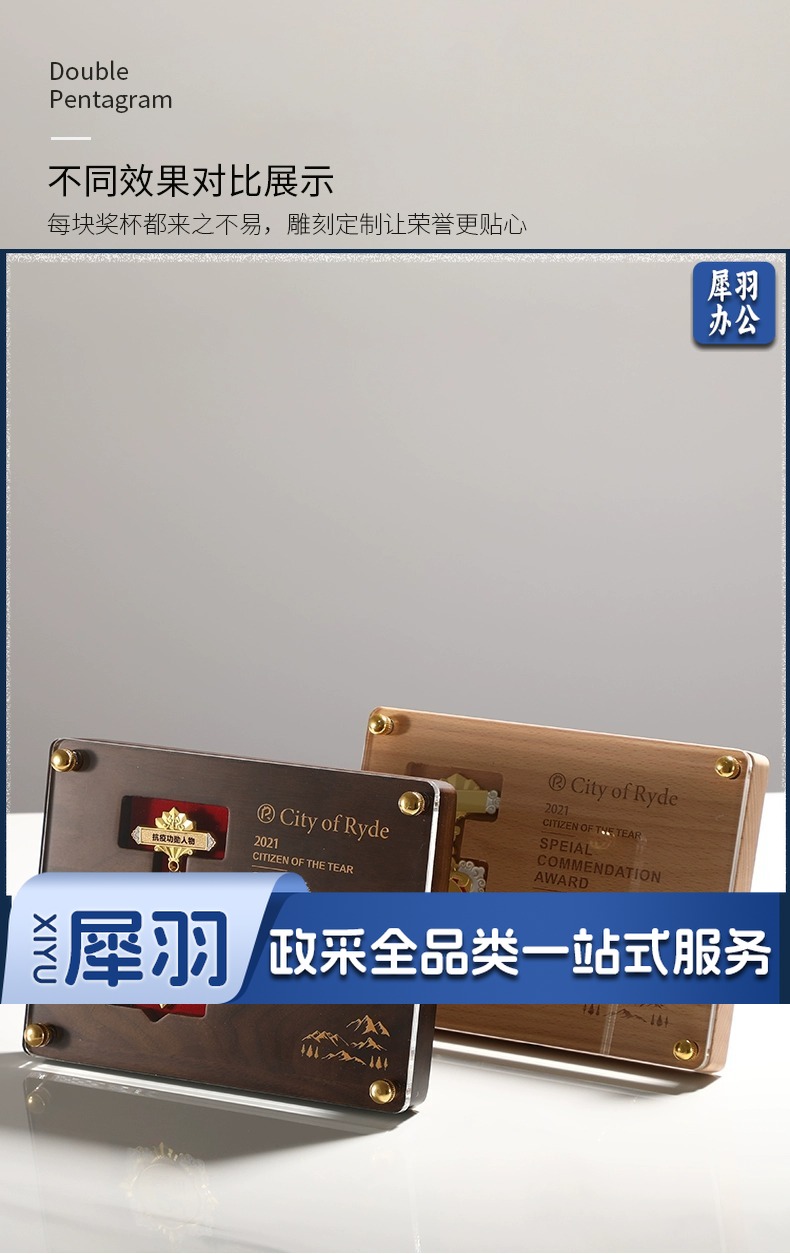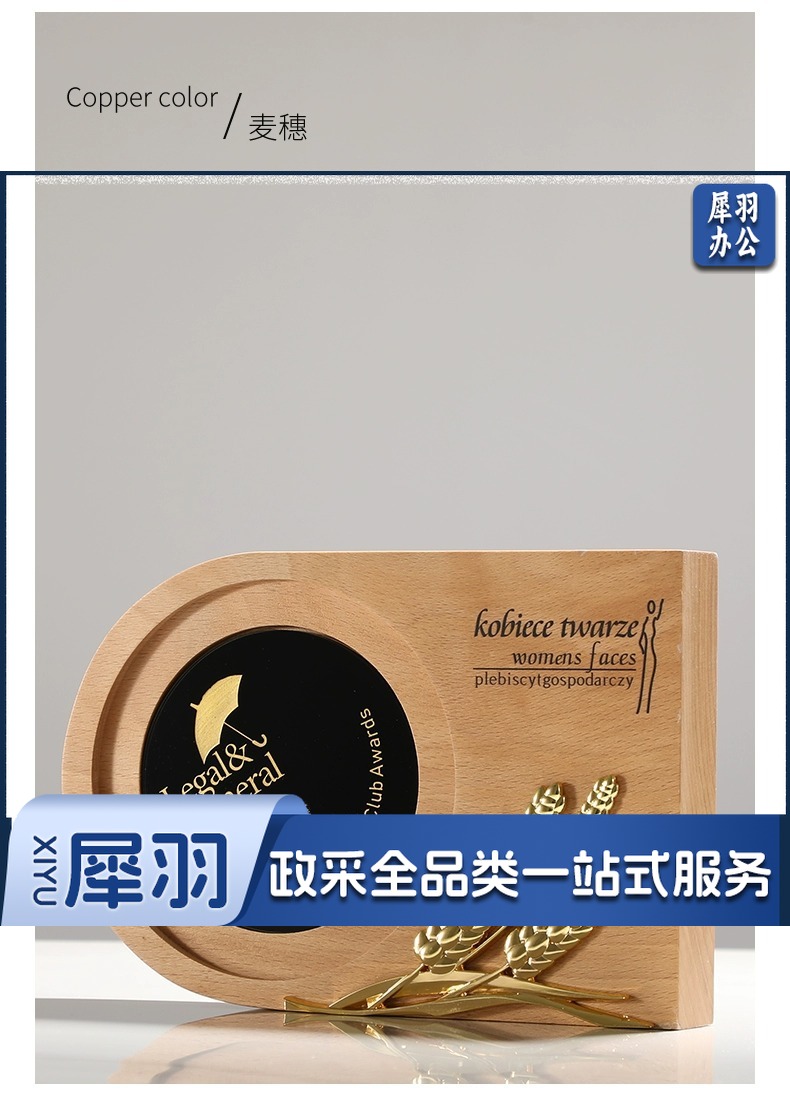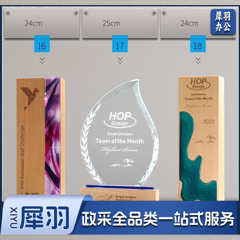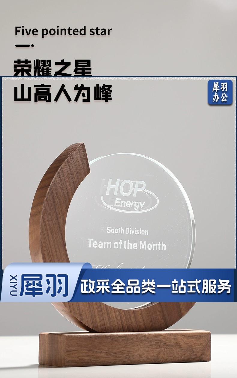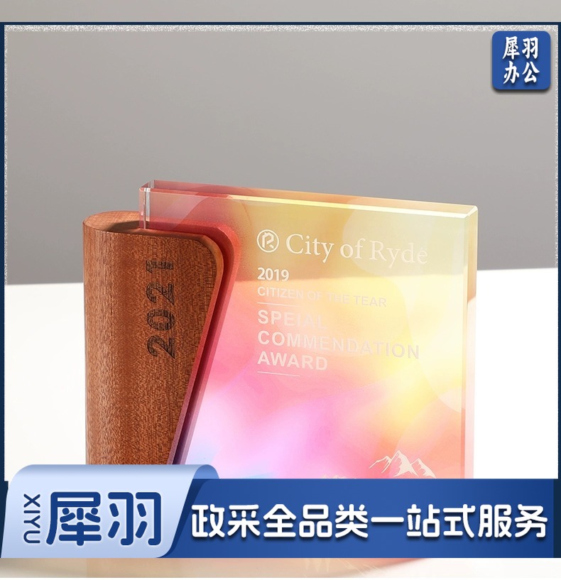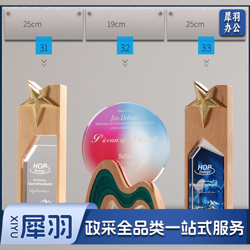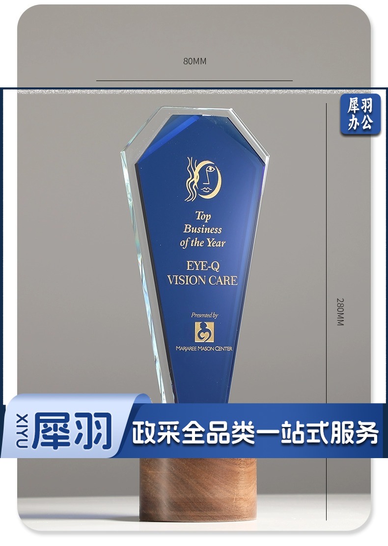 实木水晶奖杯定 制创意奖牌定 做优秀员工光荣退休运动会纪念品