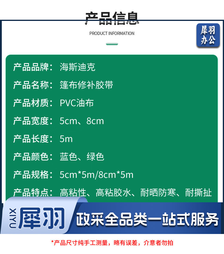 海斯迪克 篷布修补胶带 刀刮布【绿色】宽8CM*长5M 货车防雨布修复补洞高粘胶布 H-241