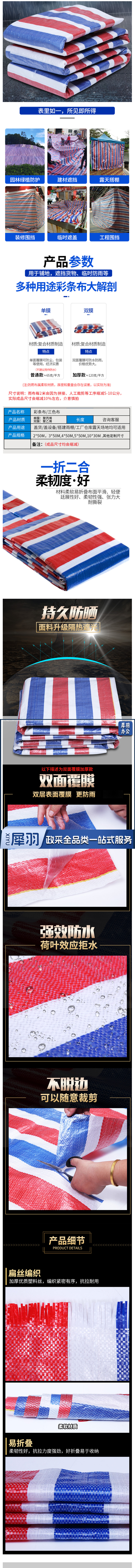 HK-211 三色防雨布 防水篷布 单膜彩条布 普通款 5米*50米