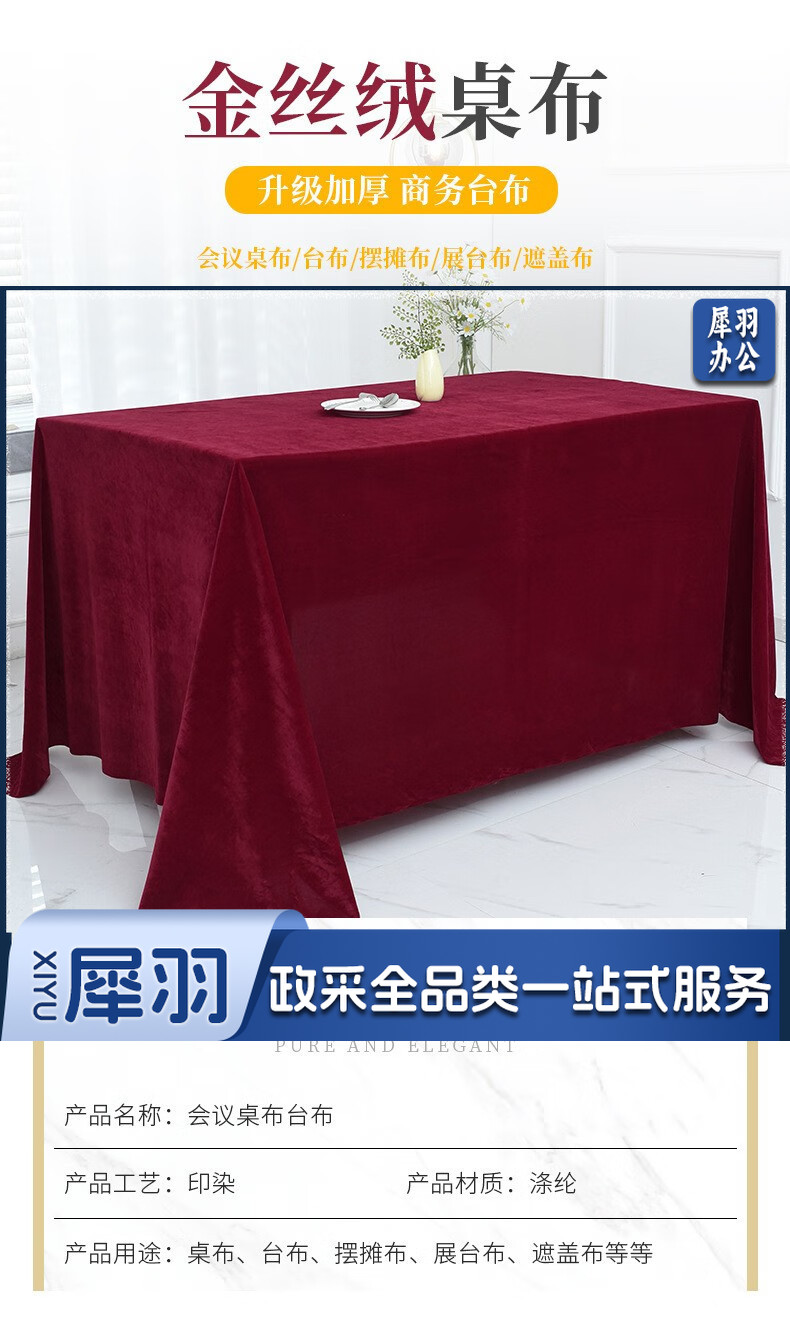 加厚大尺寸金丝绒桌布 台布 酒红色200*450cm(块)