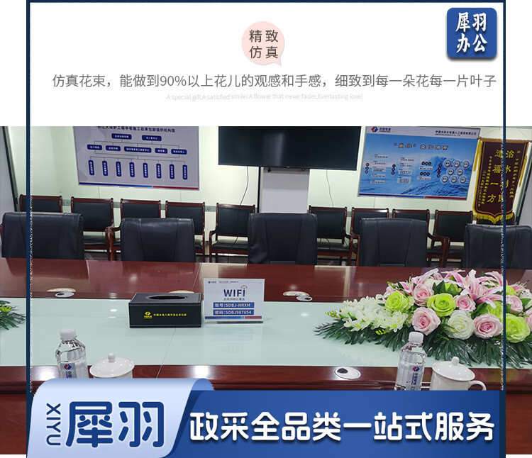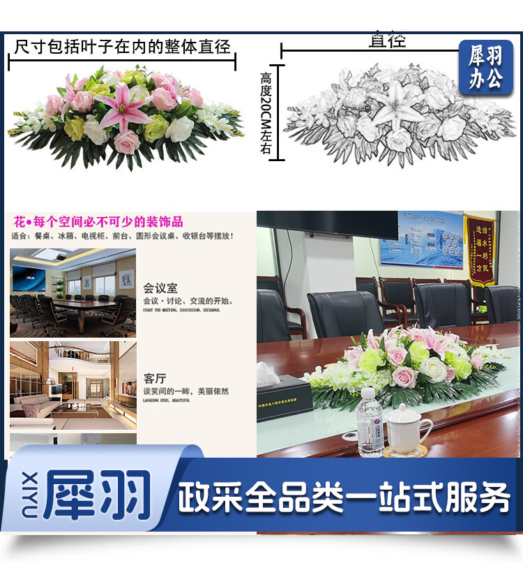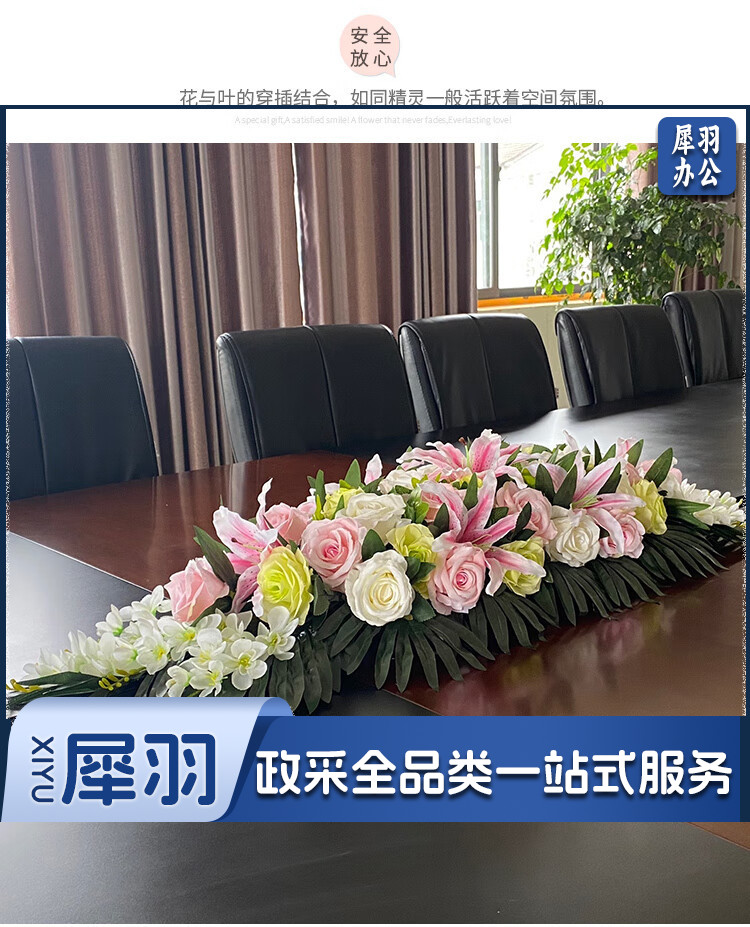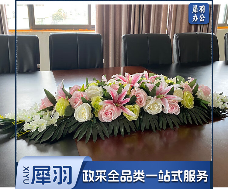 会议室桌花 摆花 仿真花 桌面假花 会议桌花 60cm 粉绿色