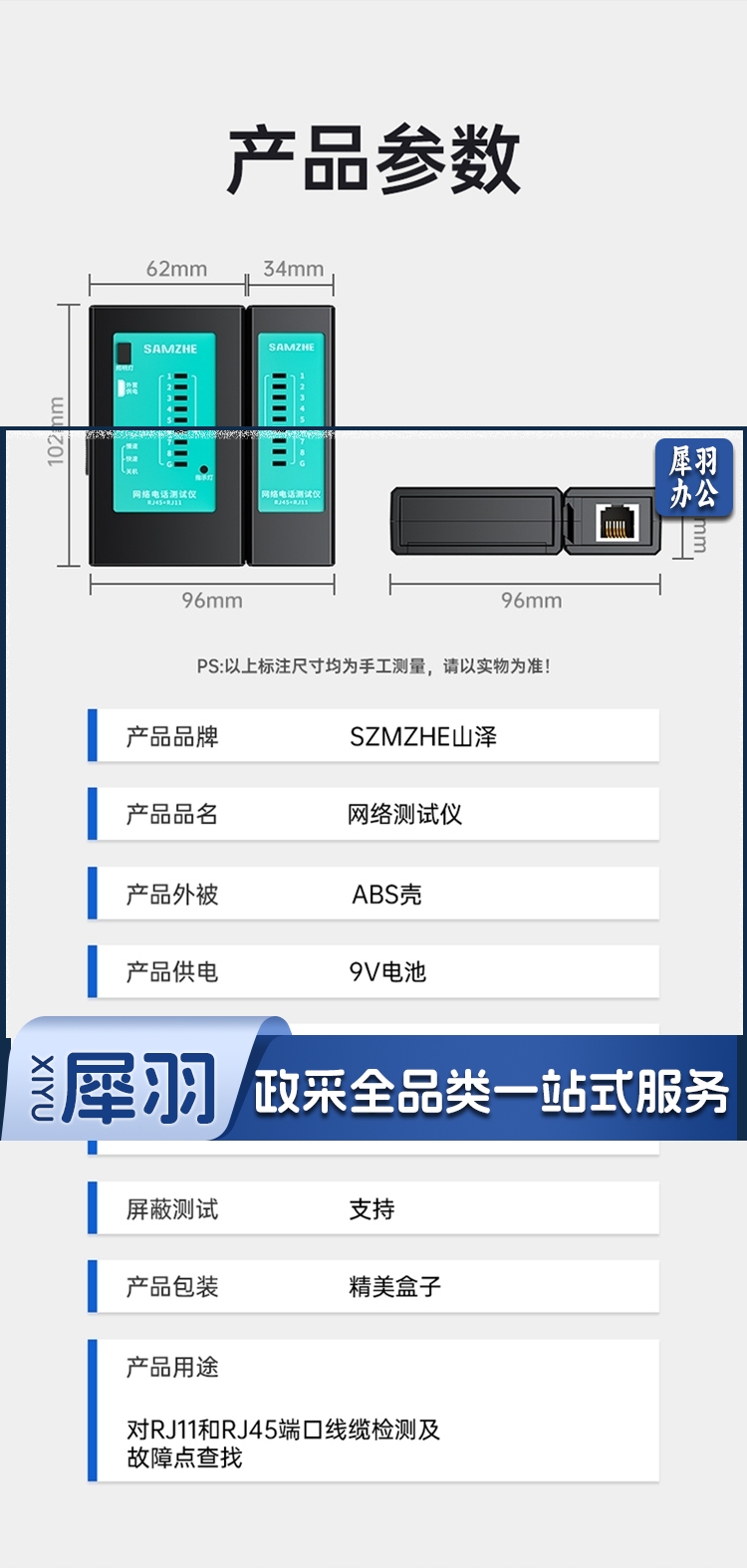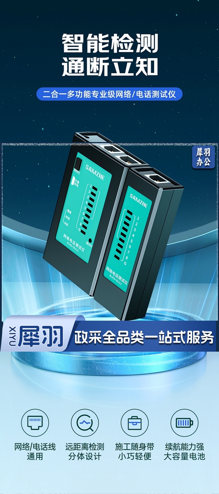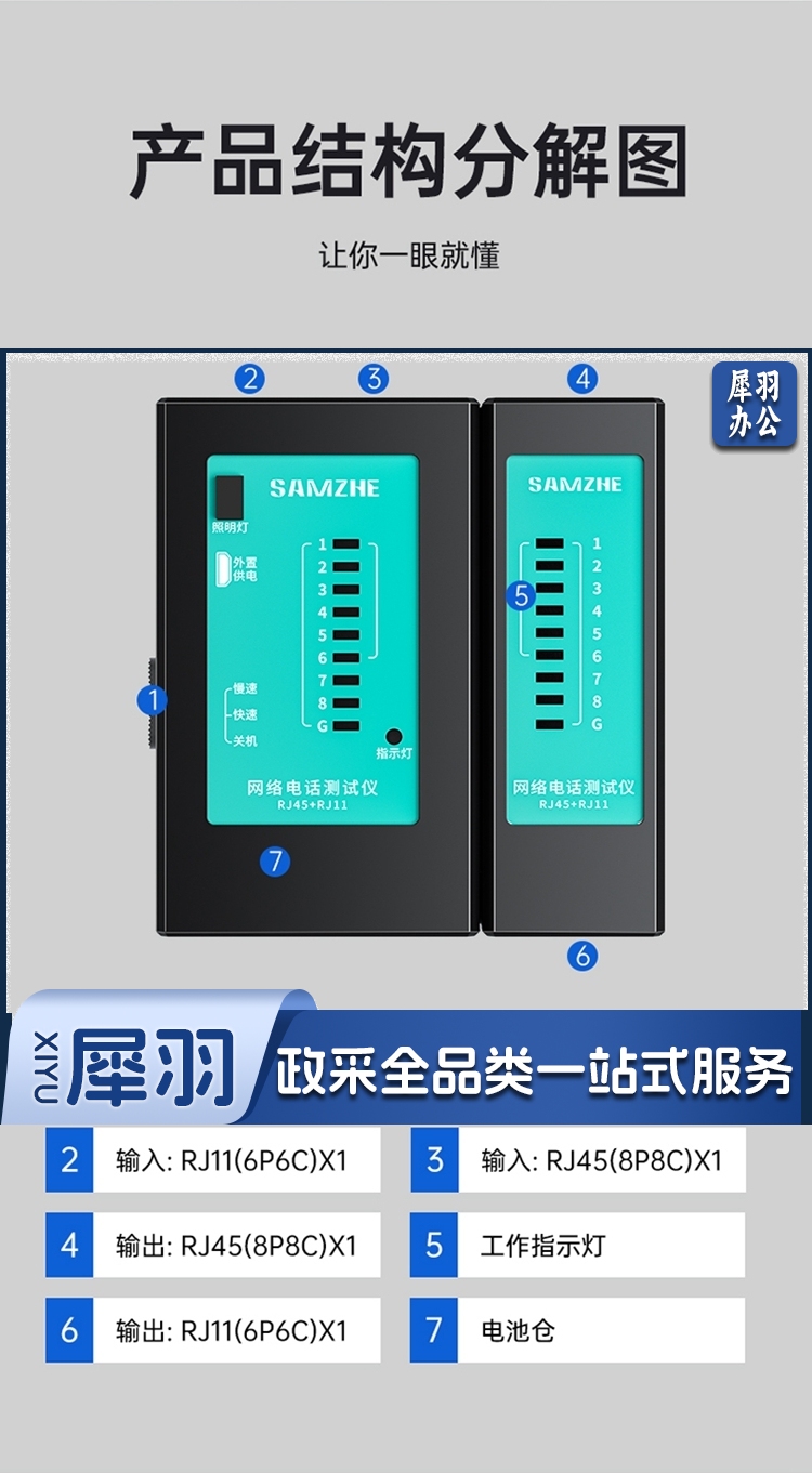 山泽/SAMZHE CS-50 测线仪 电脑水晶头电话线网络多功能测线器 黑色(单位:套)