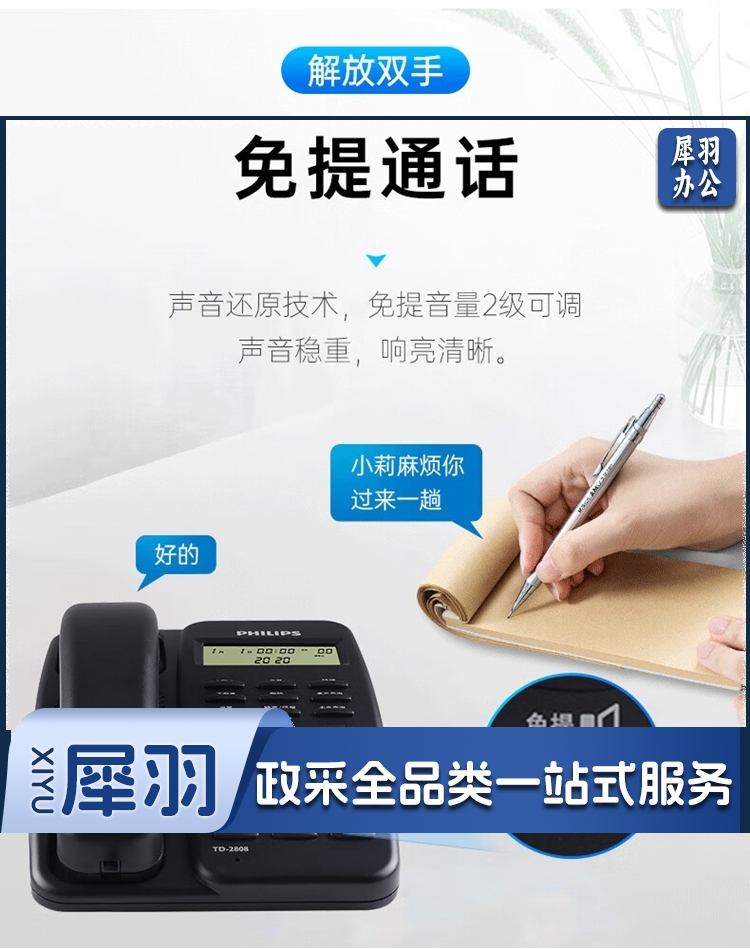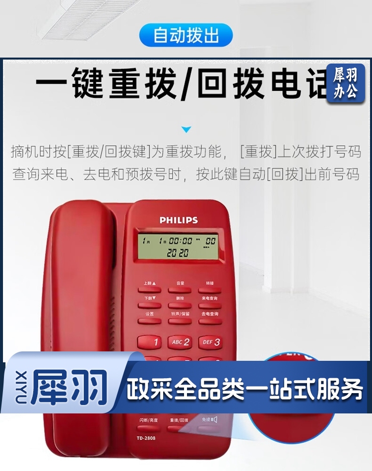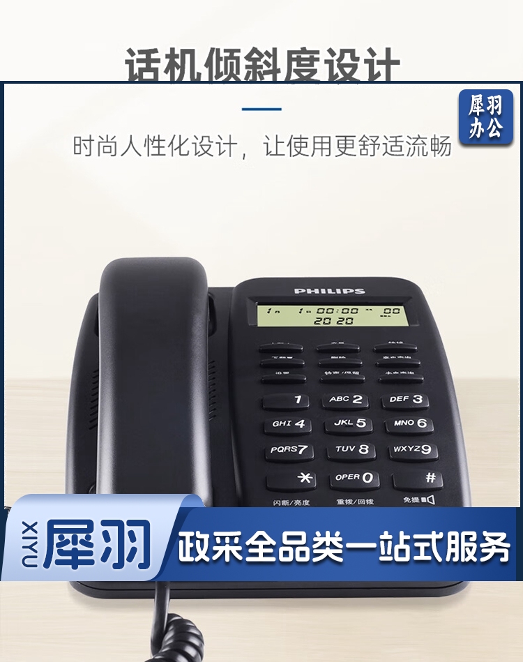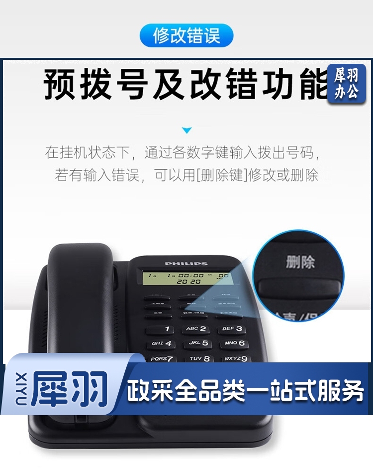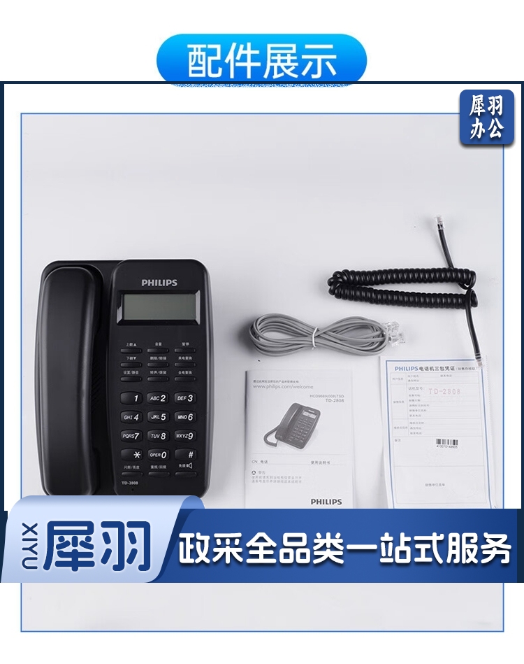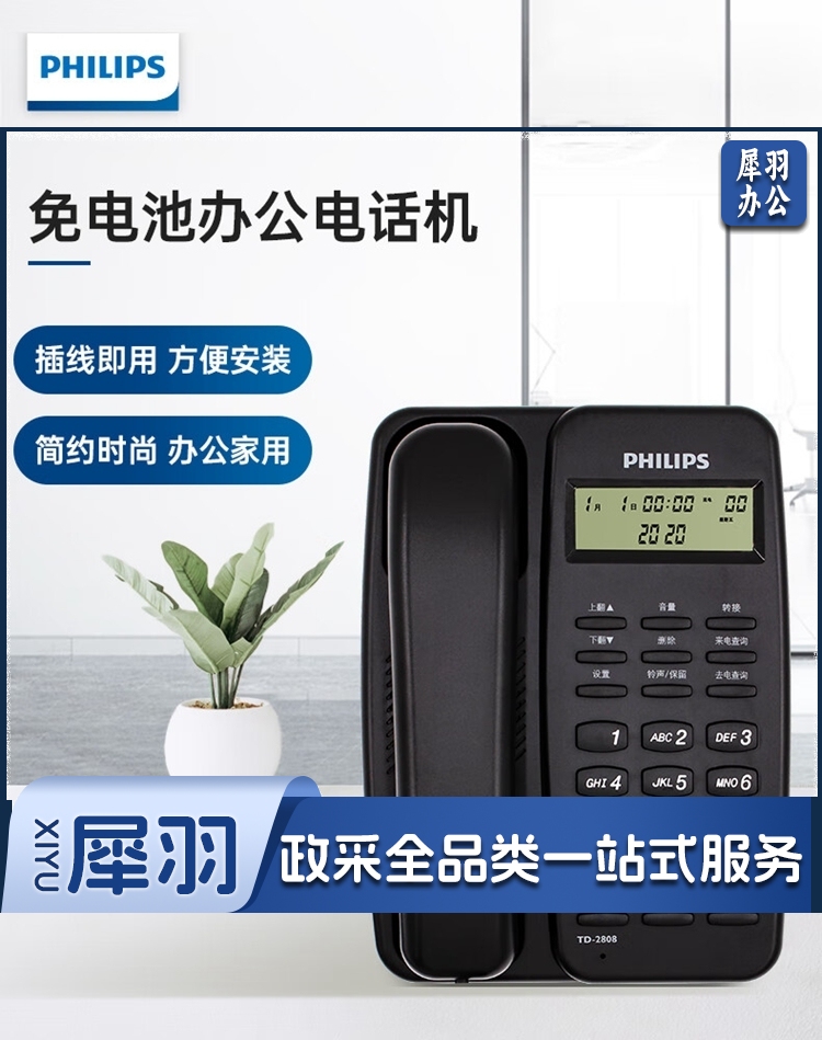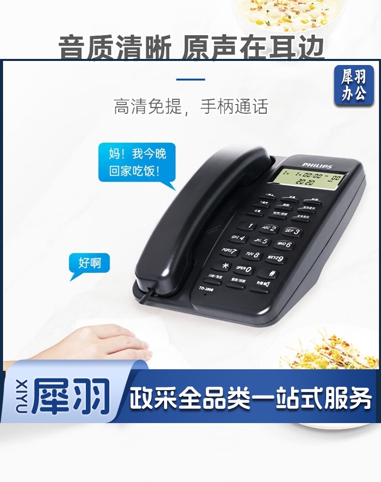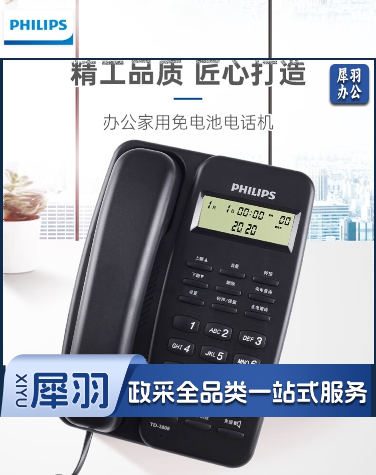 飞利浦/PHILIPS TD-2808 免提通话 免电池 电话机 黑色 单位:个