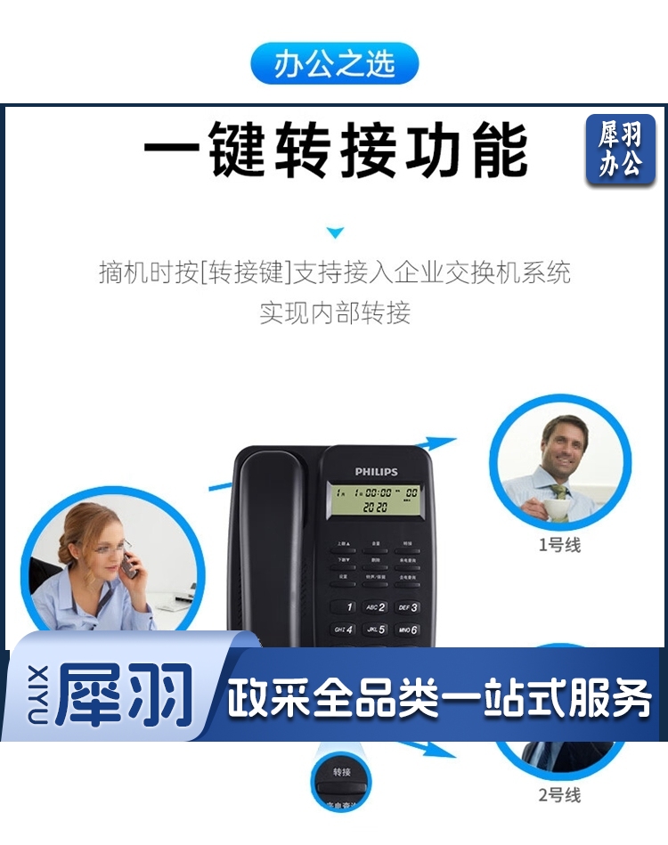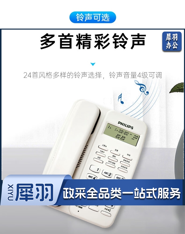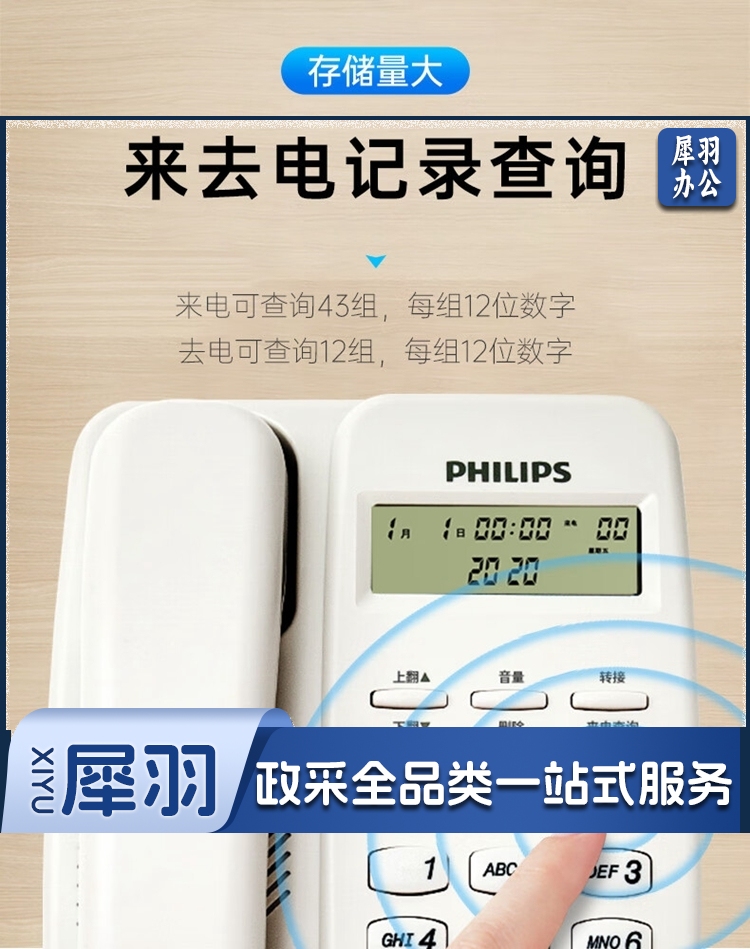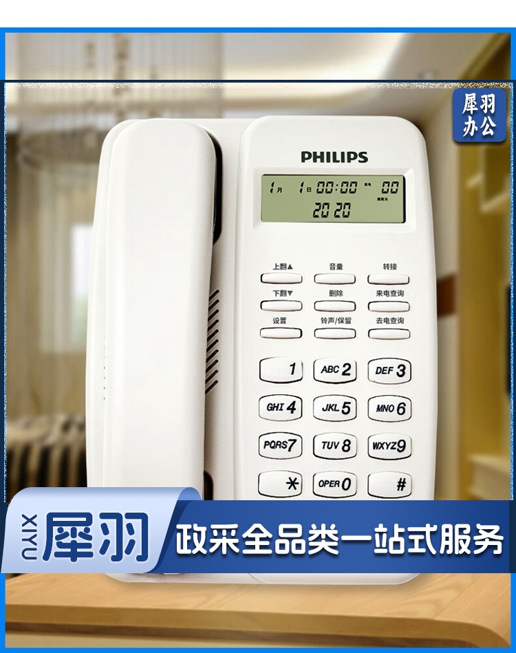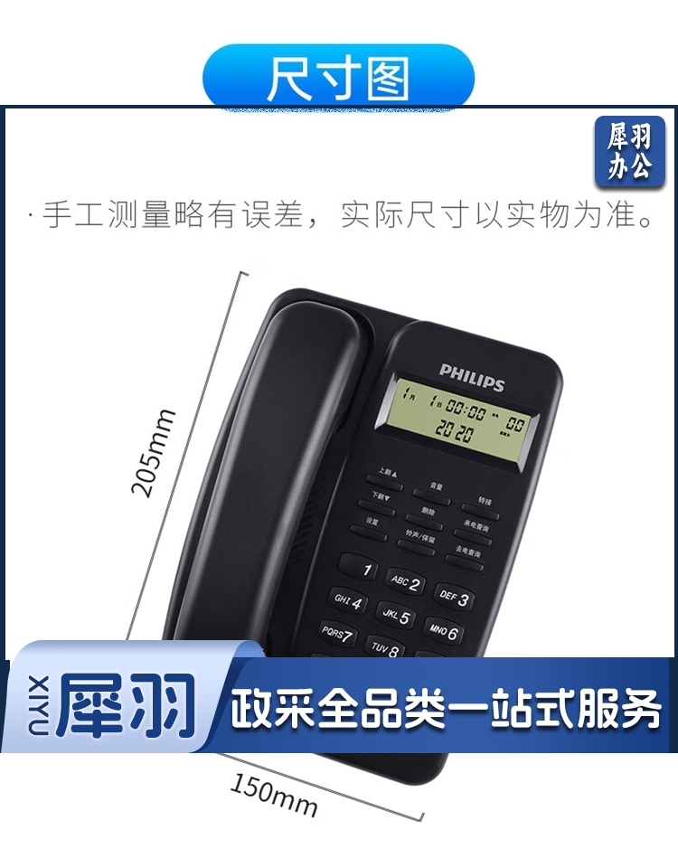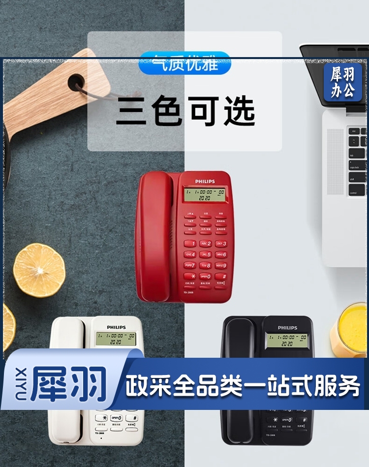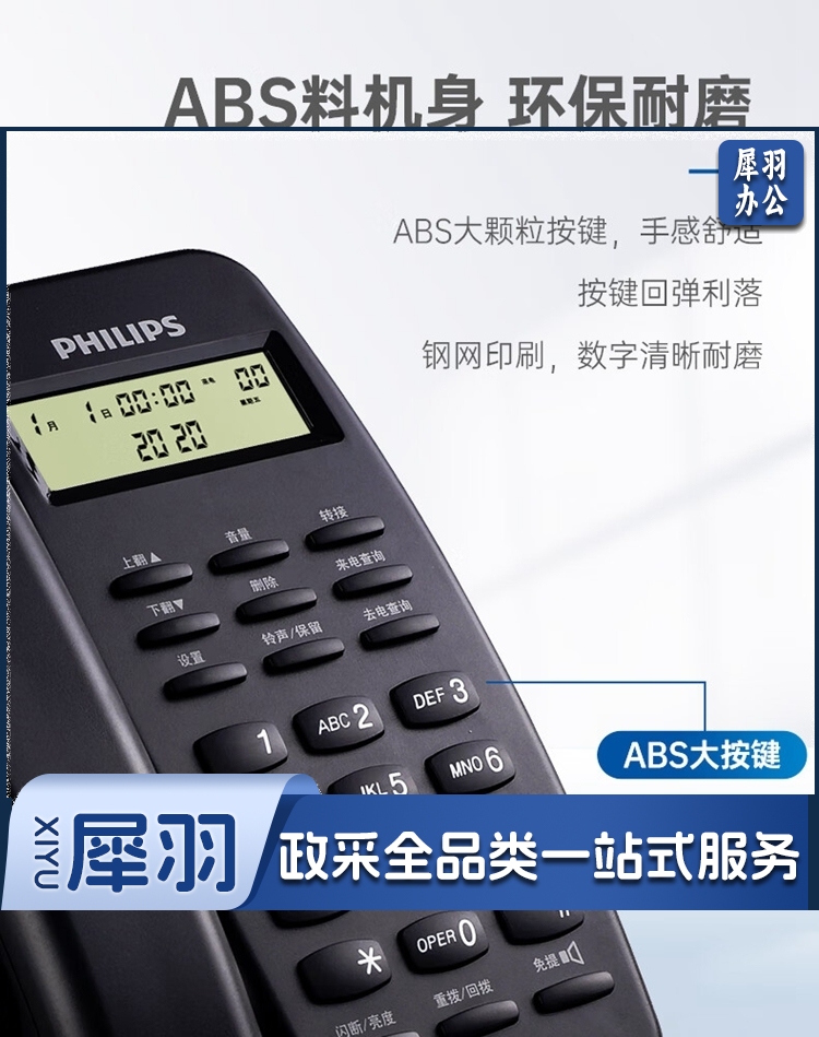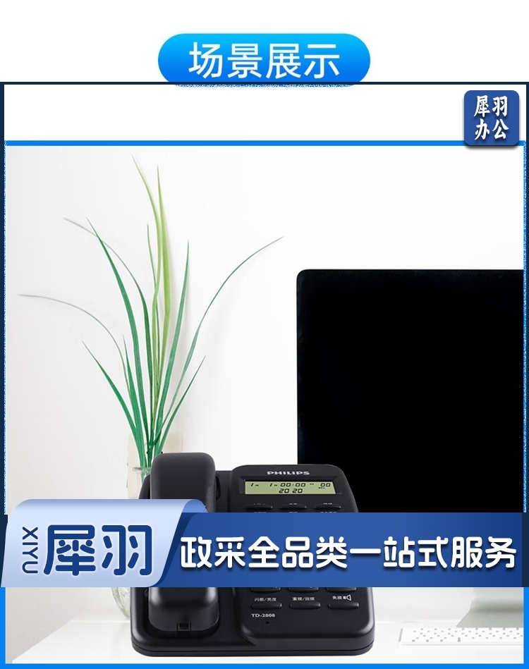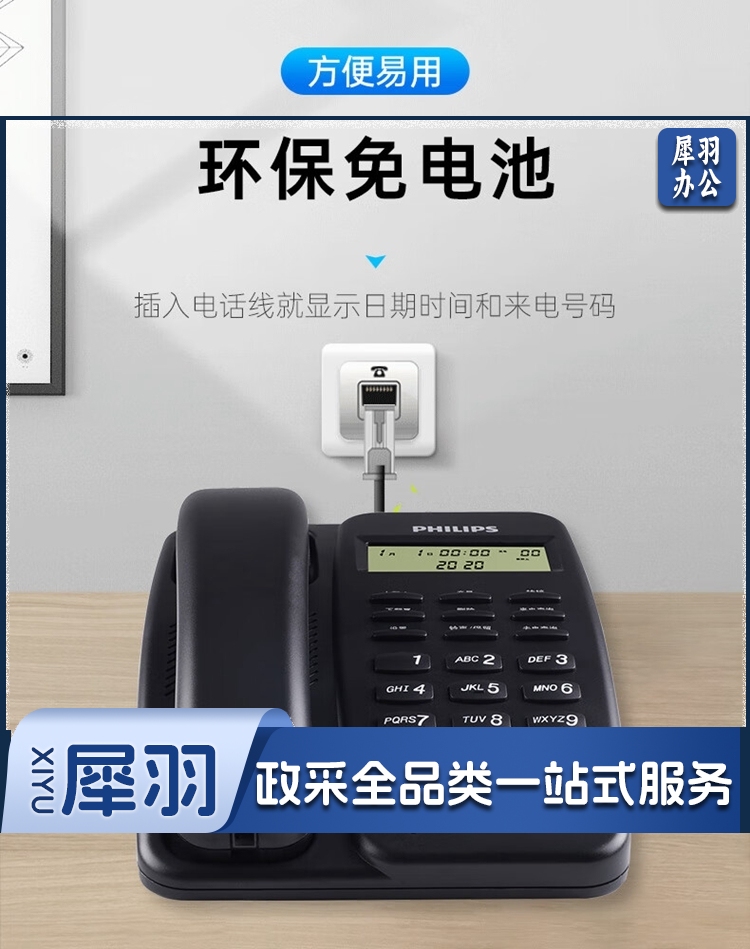 飞利浦/PHILIPS TD-2808 免提通话 免电池 电话机 黑色 单位:个