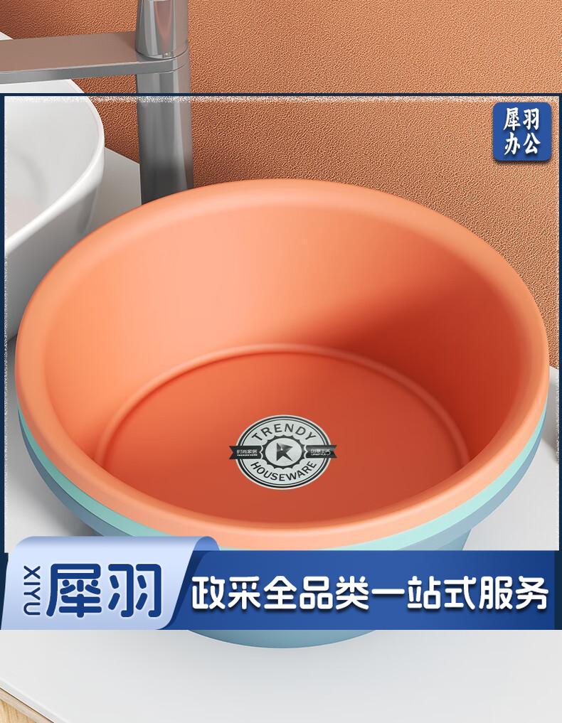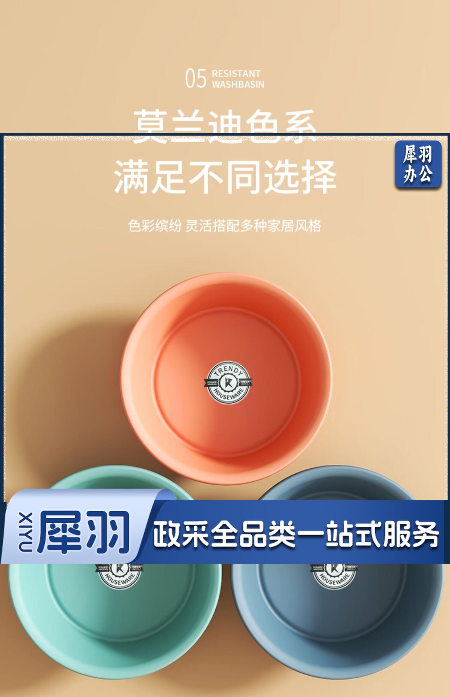 新款加厚洗脸盆家用塑料学生宿舍可爱脸盆磨砂防滑洗衣盆洗菜盆子 蓝色大号(直径32cm高12.5cm)蓝色大号直径32cm高12.5cm)