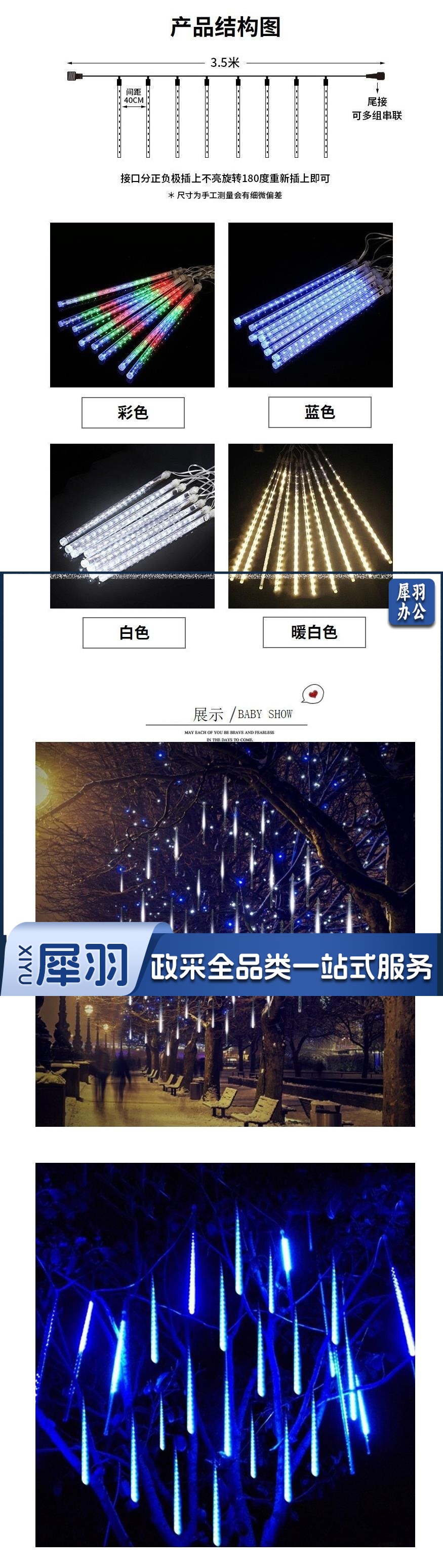 流星雨LED彩灯串 新年装饰七彩闪灯挂灯 8根一组