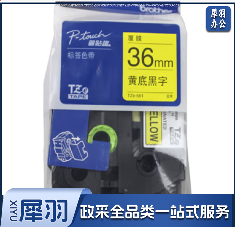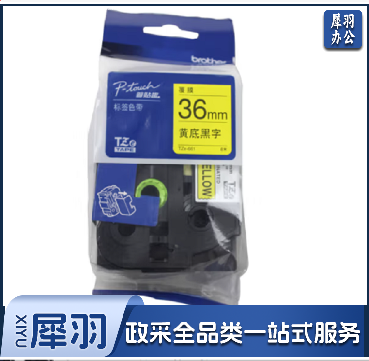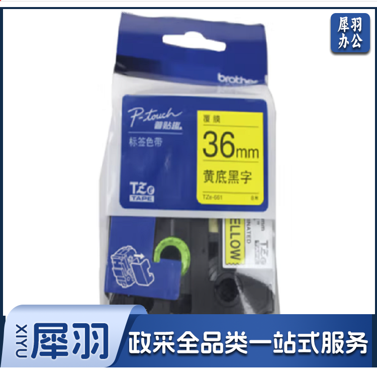 兄弟 brother TZE-661 标签打印机色带 36mm 宽度 黄底黑字 单位:个