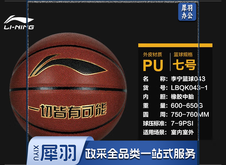 李宁 LI-NING CBA联赛官方比赛篮球室内外儿童成人7号PU蓝球 LBQK443-1