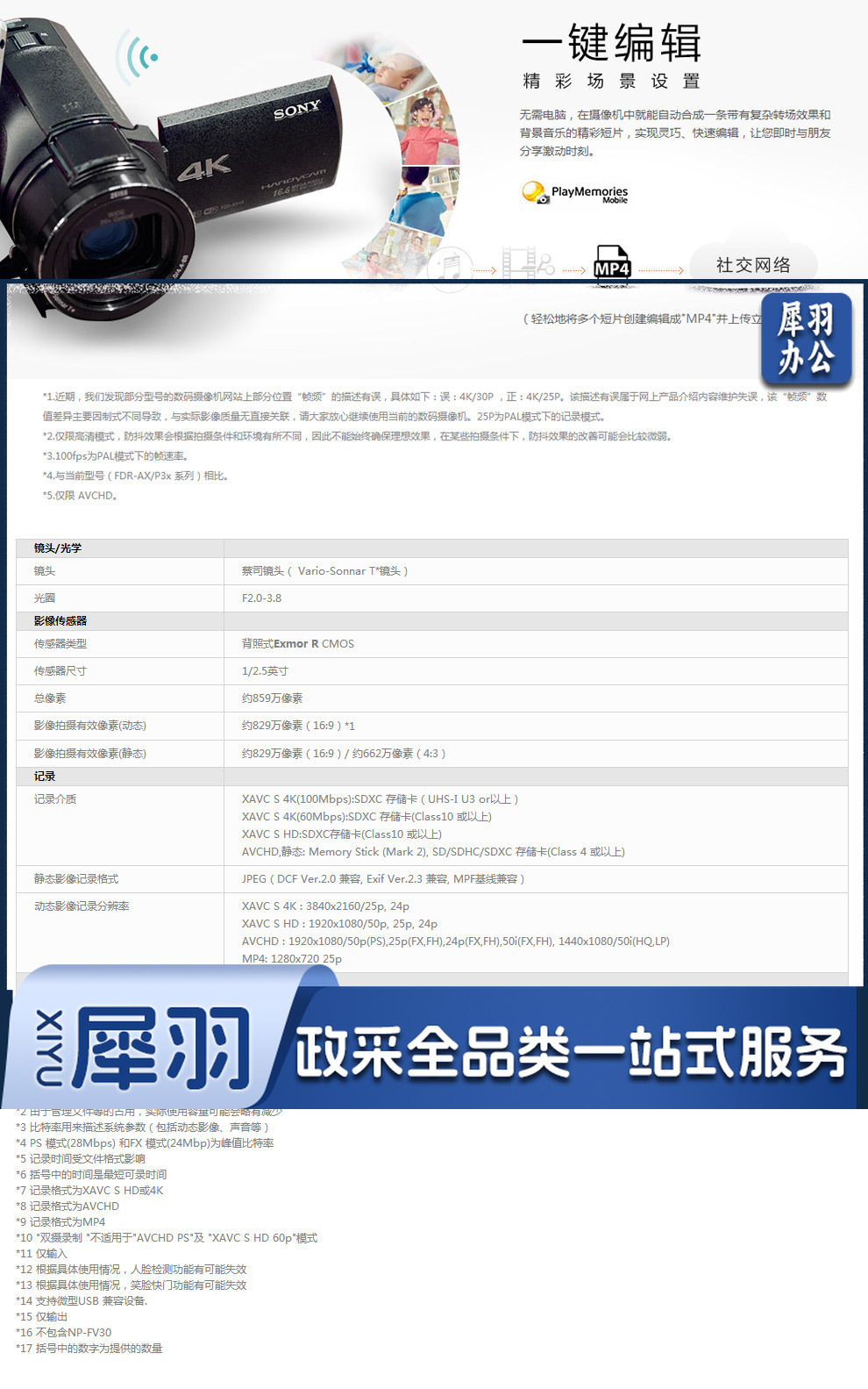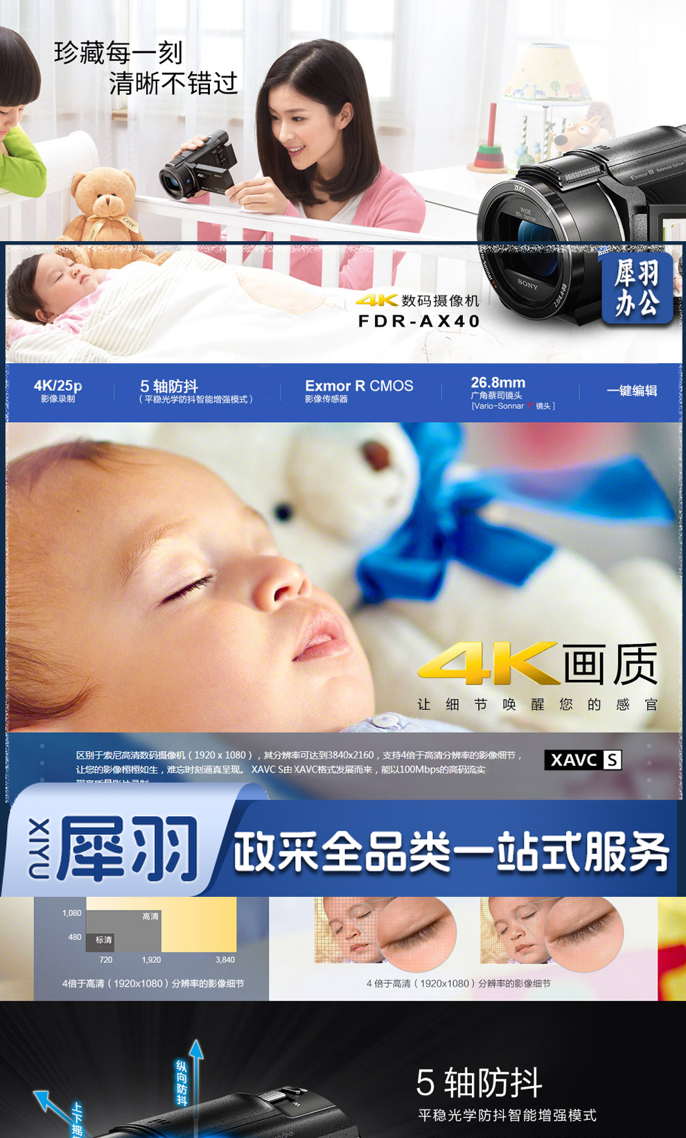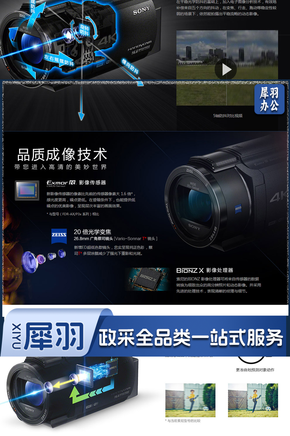 索尼(SONY) FDR-AX40 4K 高清数码摄像机 家用DV机 (内置64G内存) 单机身官方标配