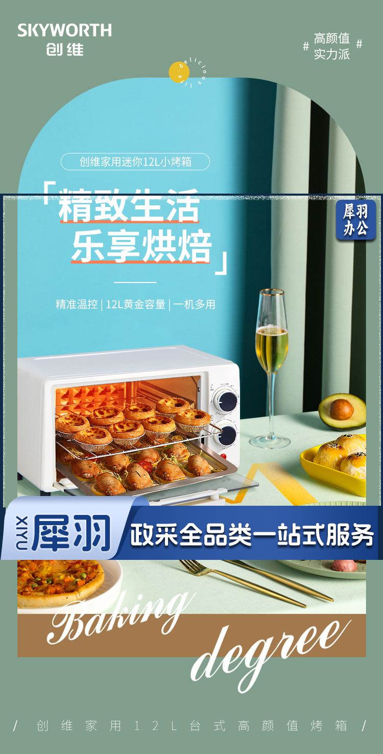 创维(Skyworth) 电烤箱 家用迷你多功能小电烤箱烘焙干果机 12L小巧不占地 【升级款】12L容量奶油黄