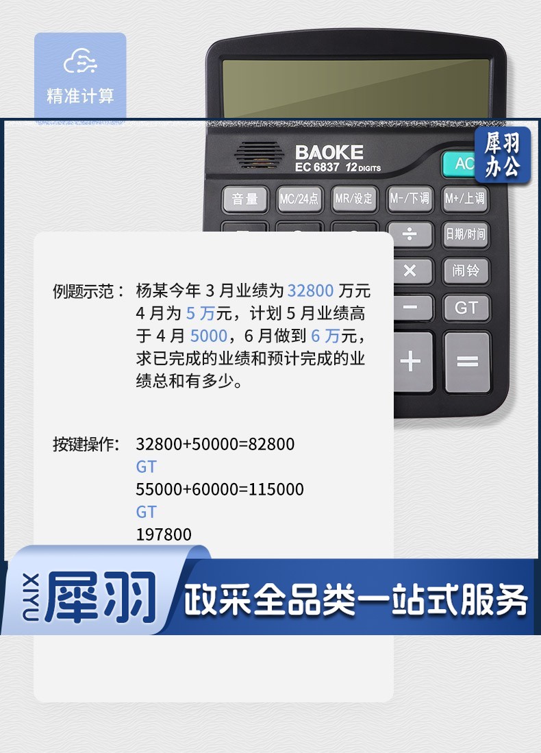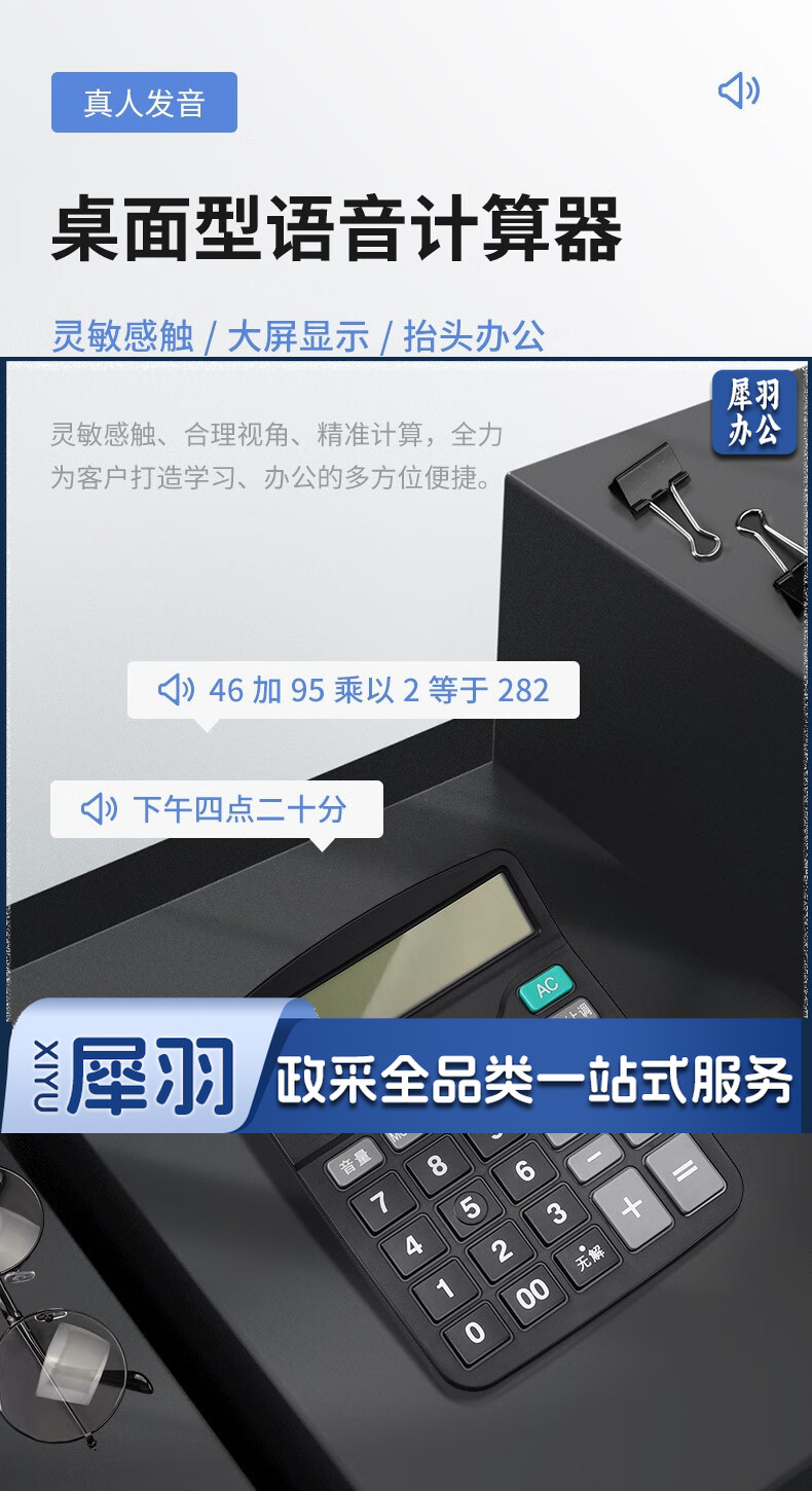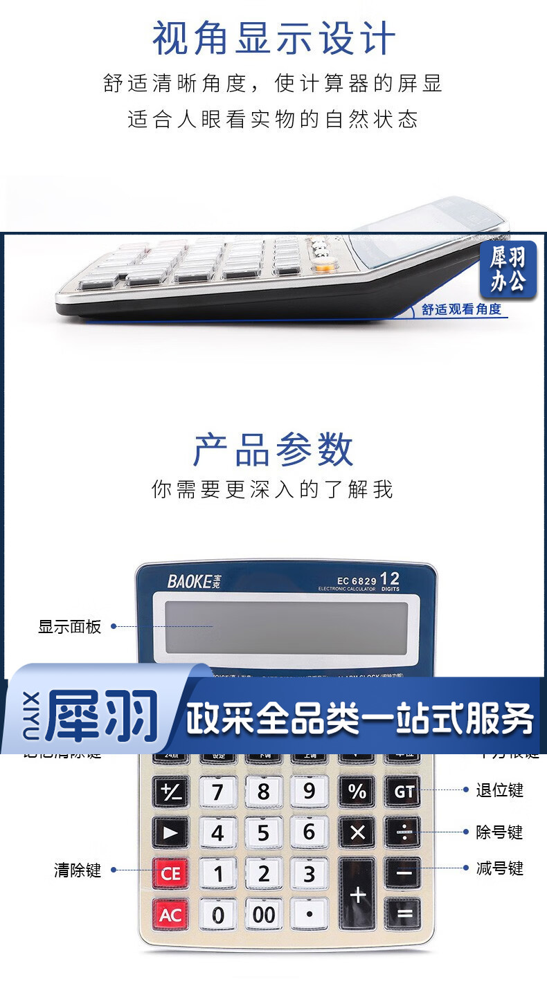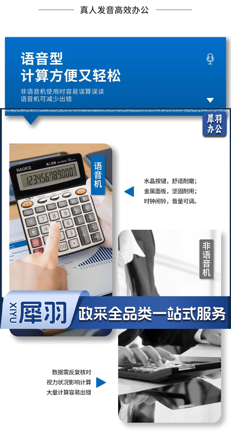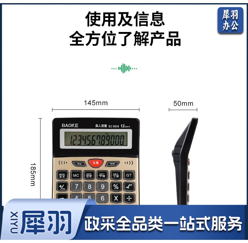 宝克(BAOKE) 语音计算机 12位带闹铃语音计算器 学生 财务 桌面办公计算机 办公用品 文具 透明按键 小巧精致 哑光白 EC6822