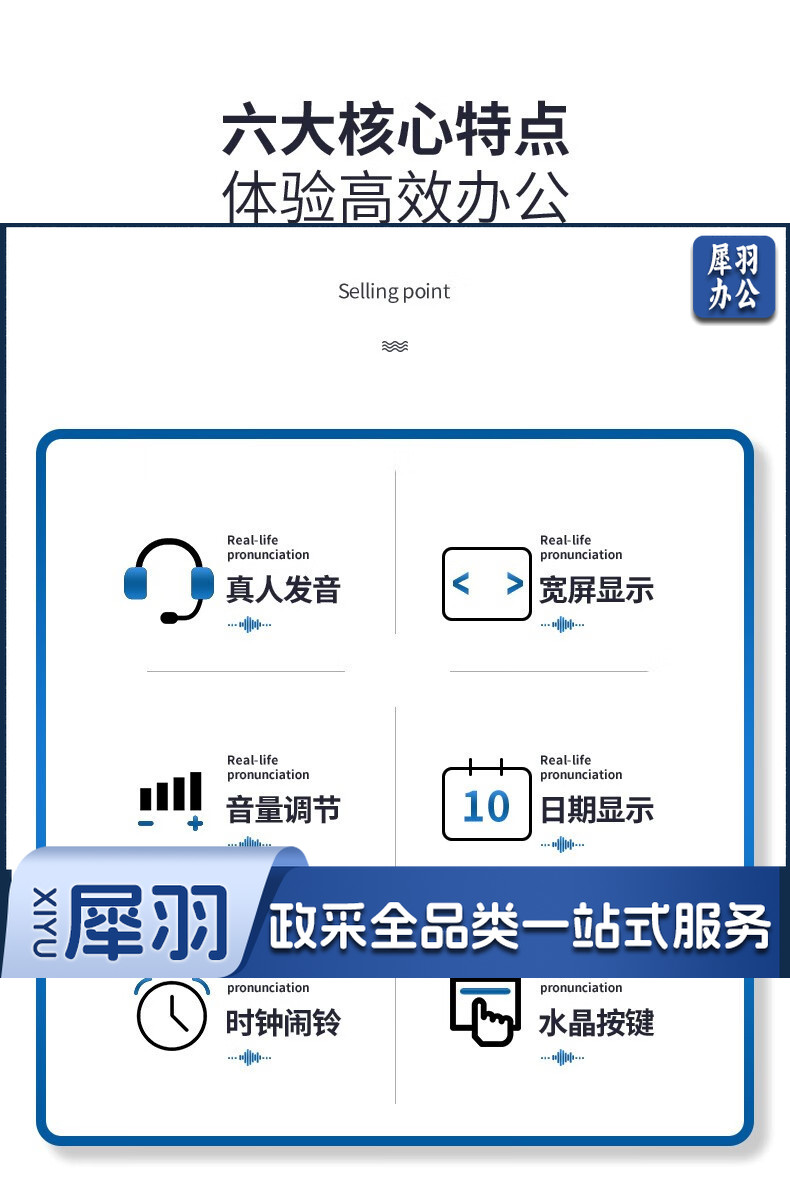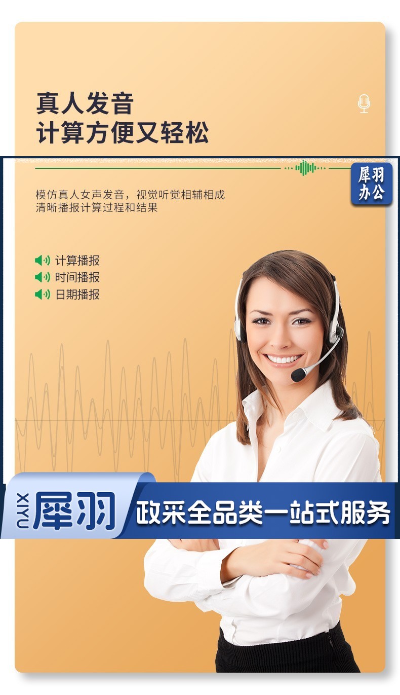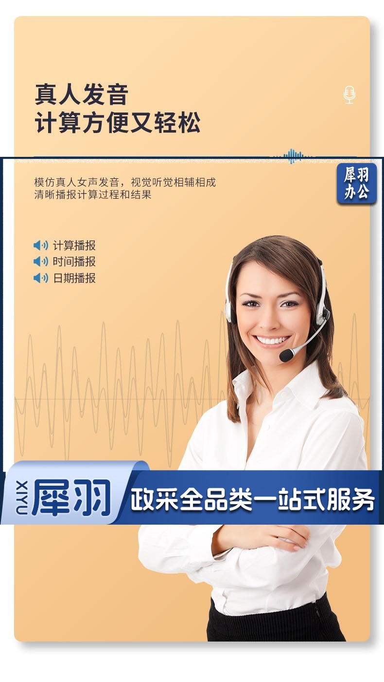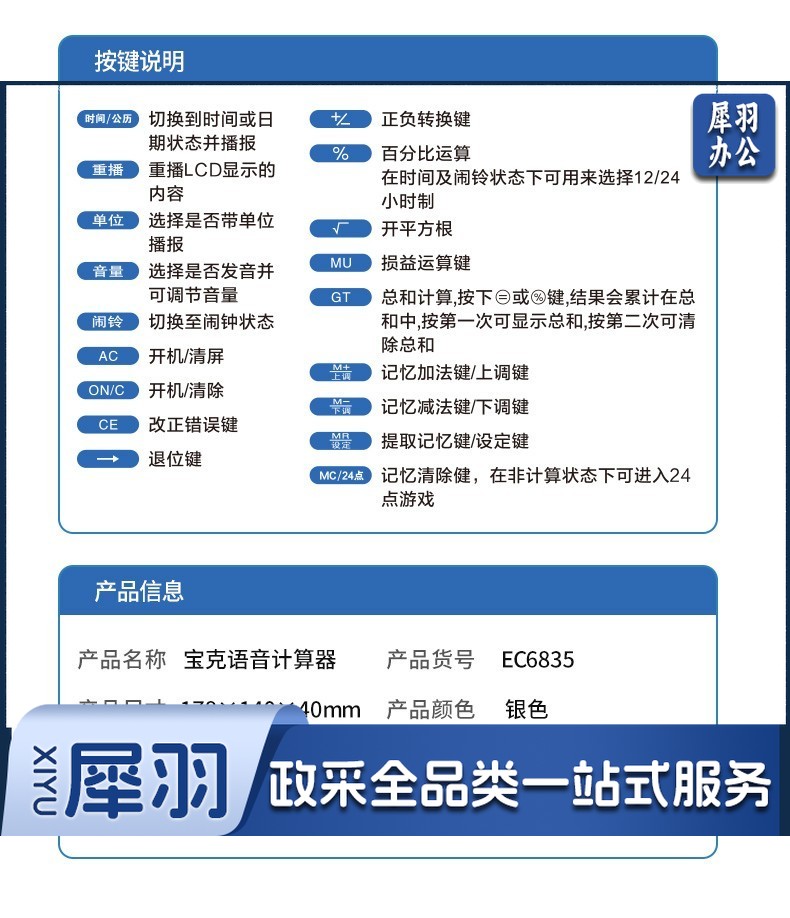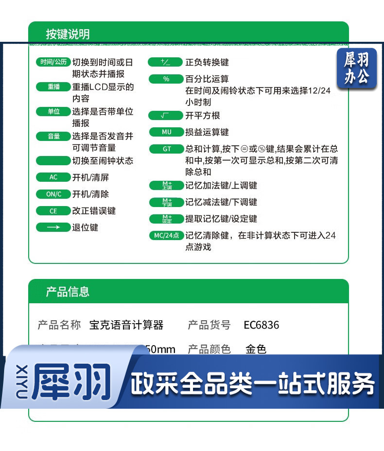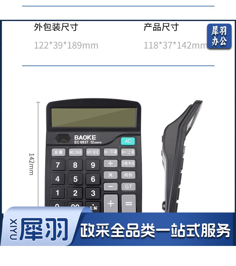 宝克(BAOKE) 语音计算机 12位带闹铃语音计算器 学生 财务 桌面办公计算机 办公用品 文具 透明按键 小巧精致 哑光白 EC6822