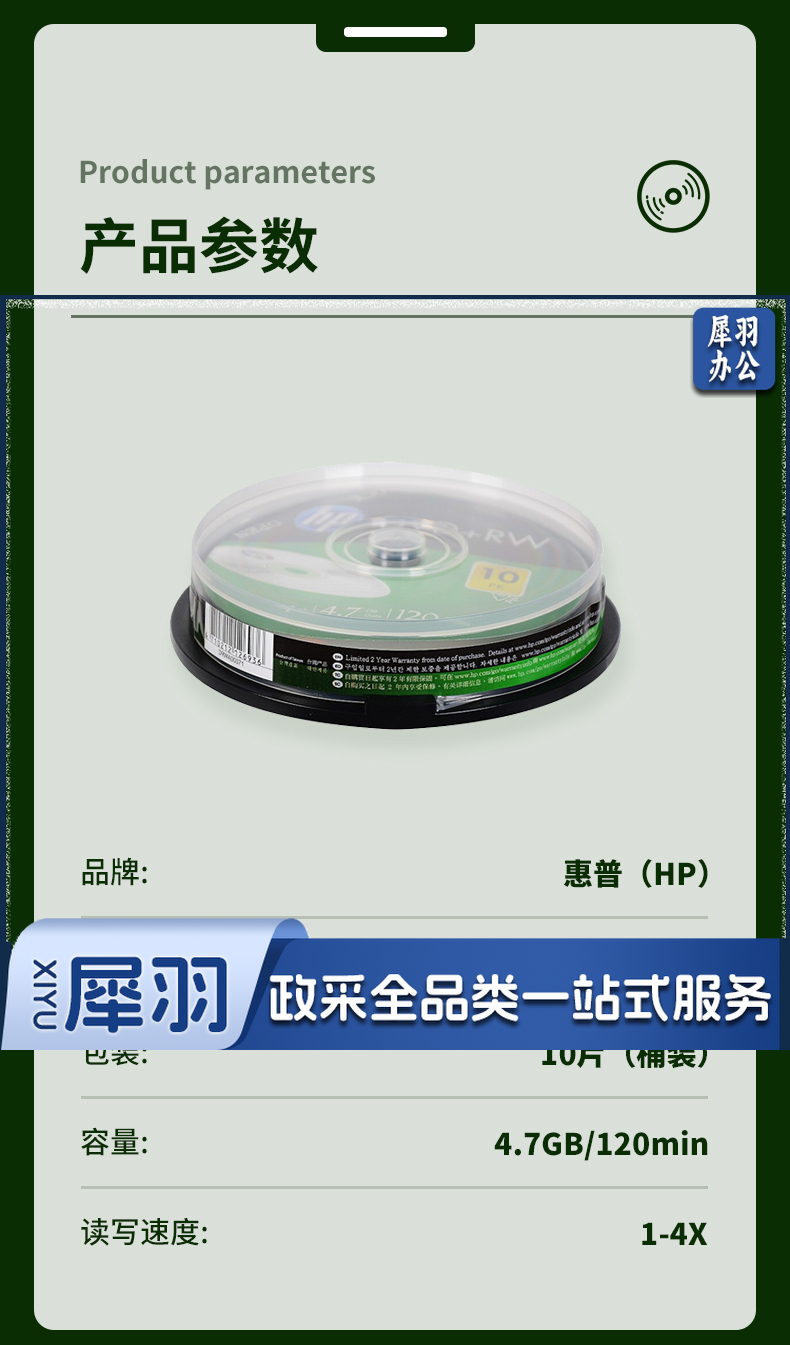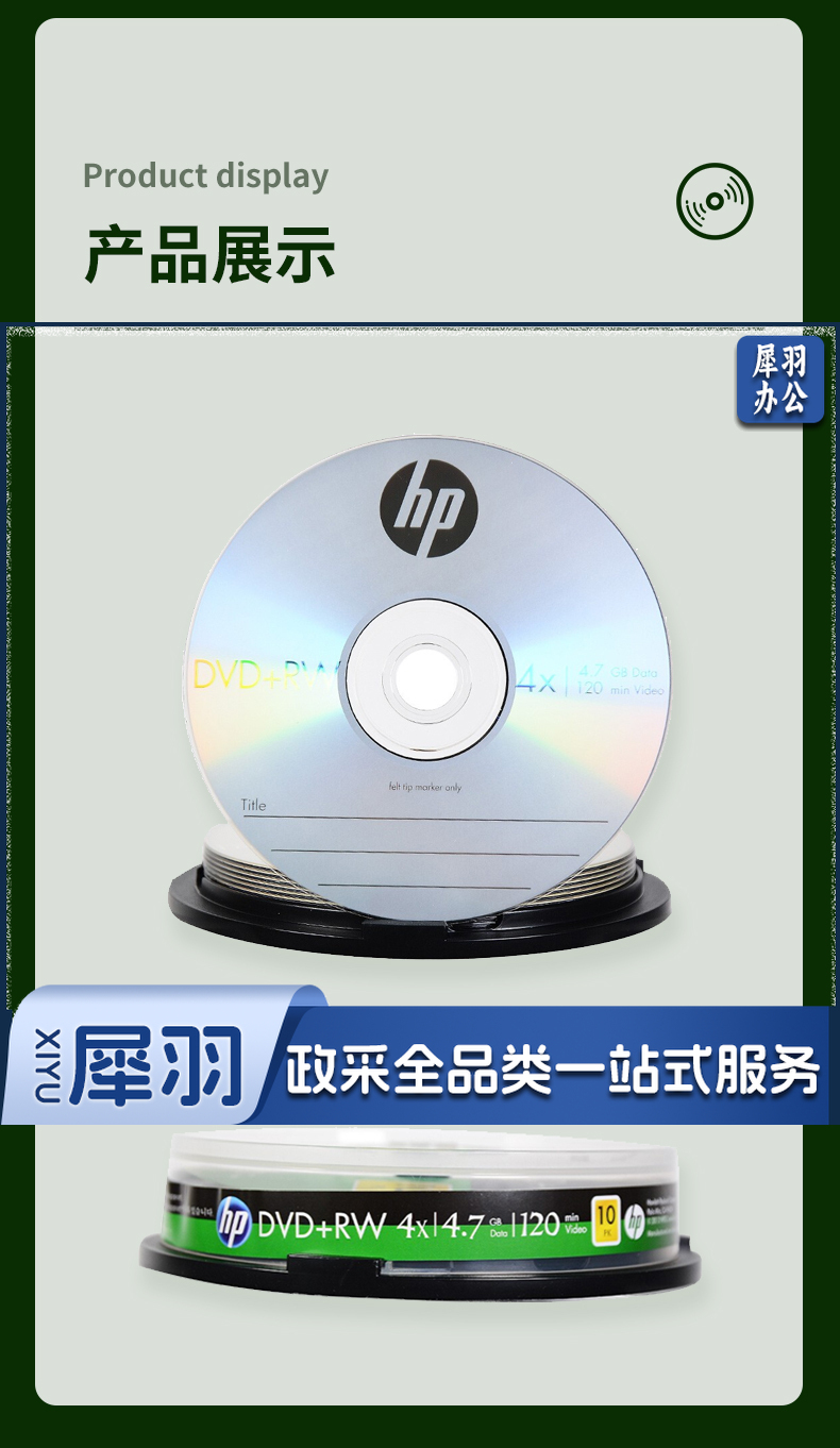 惠普(HP) DVD+RW可擦写 光盘/刻录盘 空白光盘 4速4.7GB
