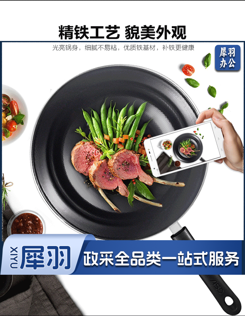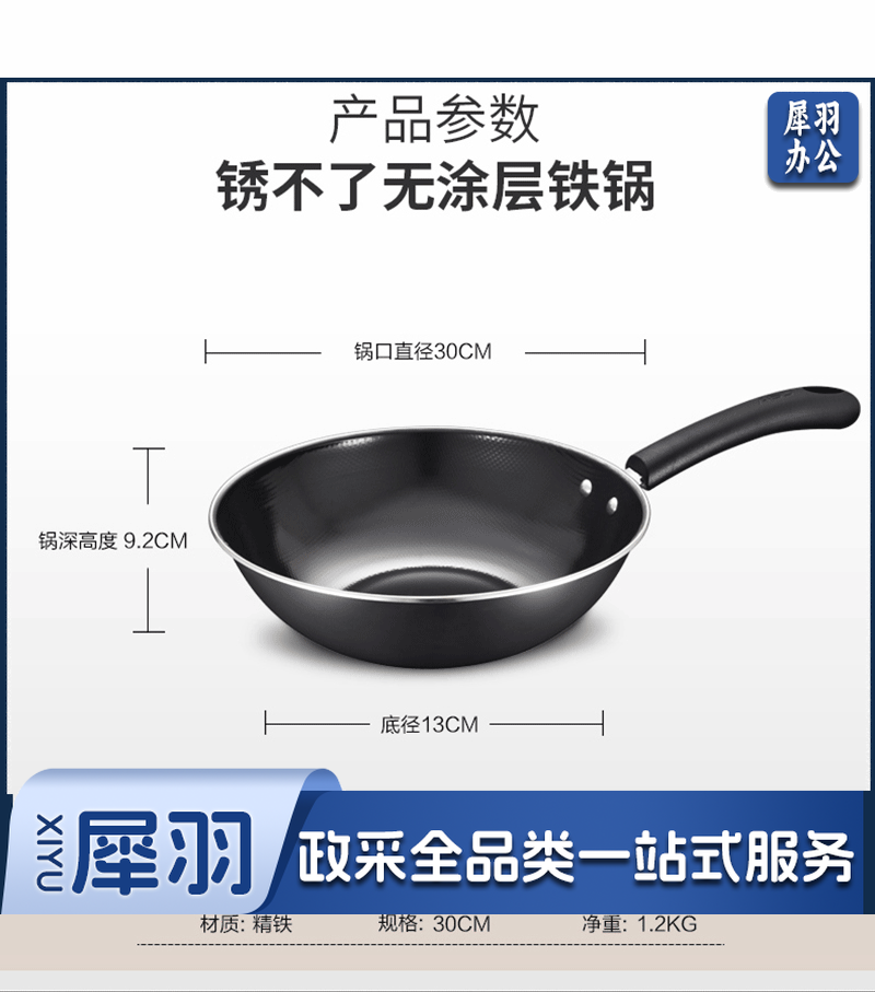 爱仕达(ASD)炒锅不易锈铁锅 CF30B1TG 30CM 精铁炒锅
