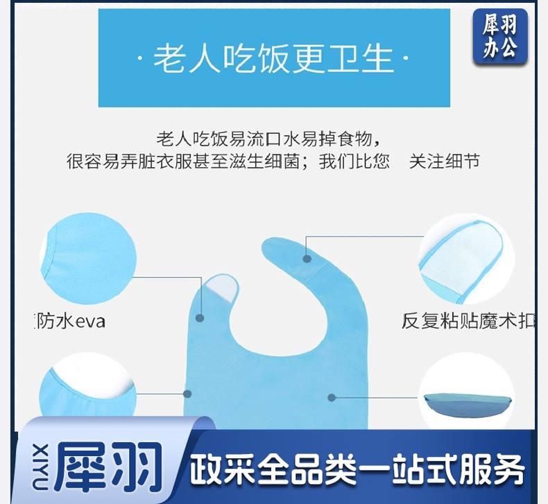 成人围兜 老年人围嘴免洗立体饭兜 天蓝色 25cm短款 一条装
