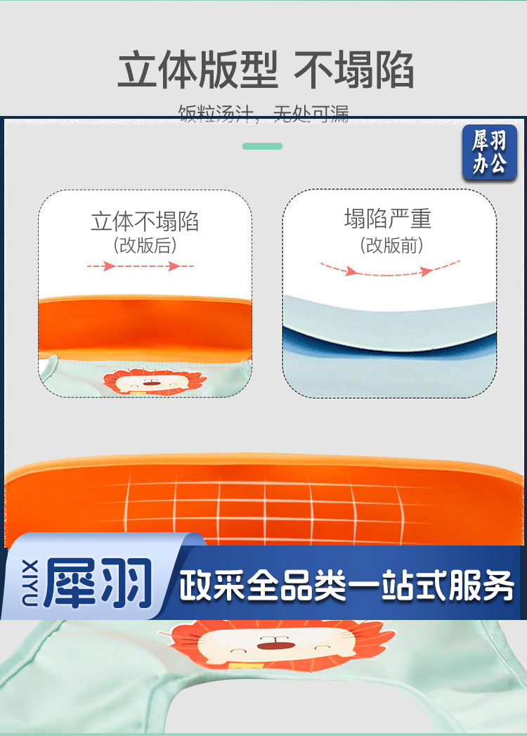 宝宝围兜婴儿硅胶吃饭兜防水围嘴吐奶儿童罩衣 绿色狮子+收纳盒