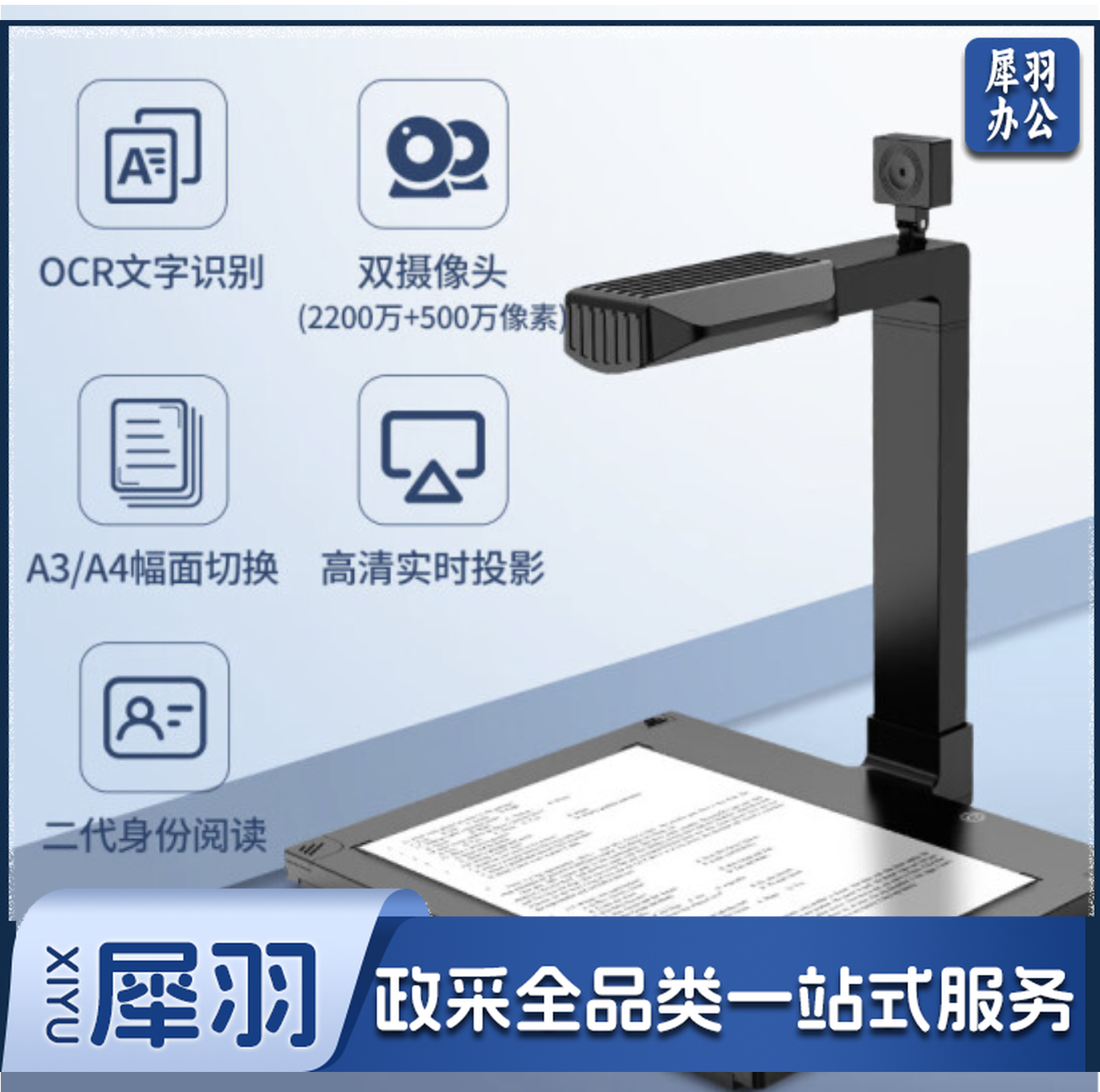 汉王HW-2200 S3国产智能高拍仪扫描仪A3幅面2200万双摄像头内置二代身份读卡器