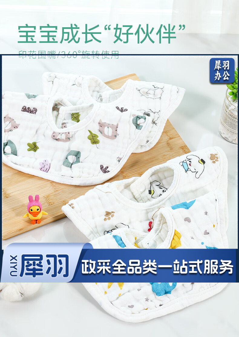 A类纯棉8层围嘴4条装婴儿纱布口水巾围兜宝宝360度旋转吸水饭兜
