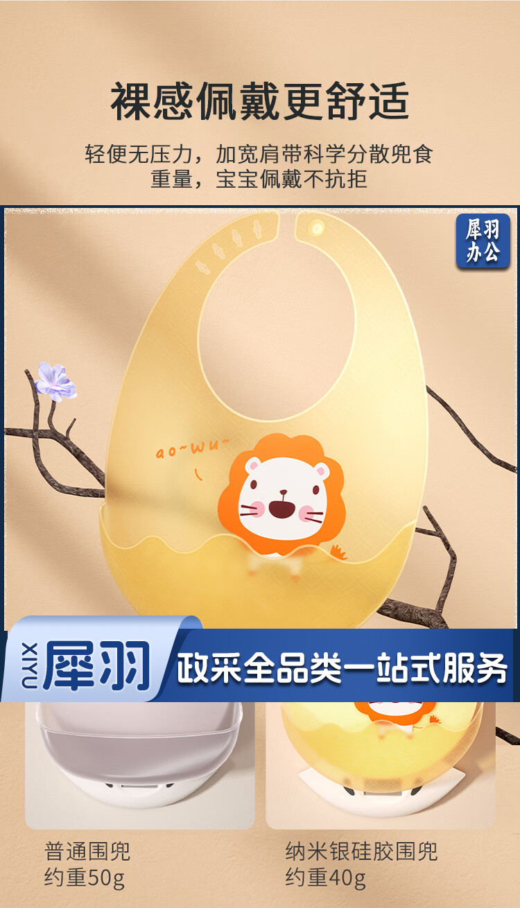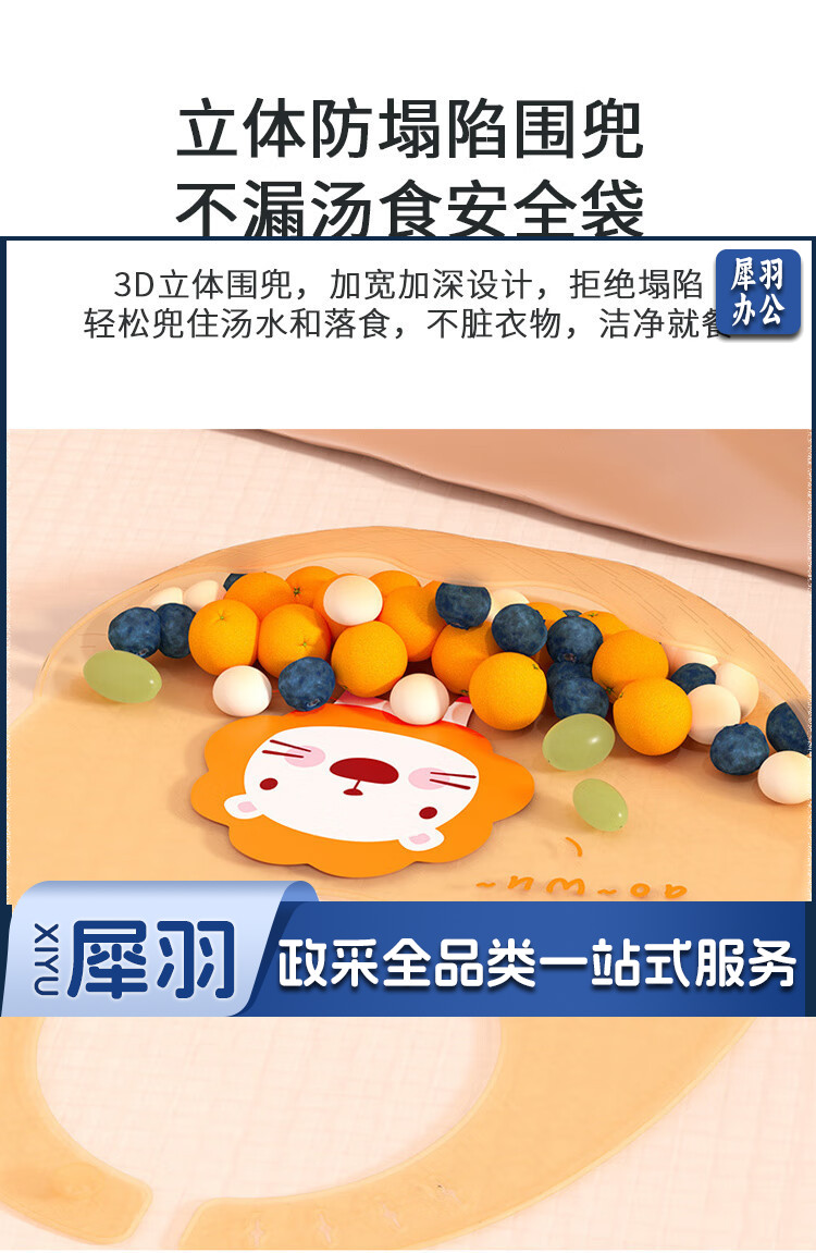 围兜婴儿宝宝吃饭围兜饭兜儿童罩衣围裙3D裸感硅胶围兜 小狮子