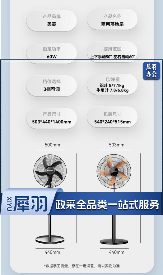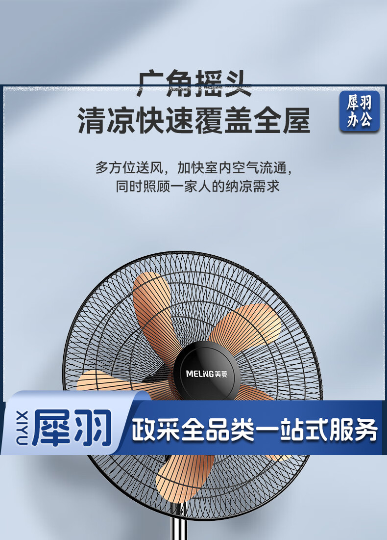 美菱(MeiLing)电风扇/风扇落地式立式轻音节能落地扇 家用/商用/办公室/工业风扇 五叶摇头大风量电扇MPF-DA5040