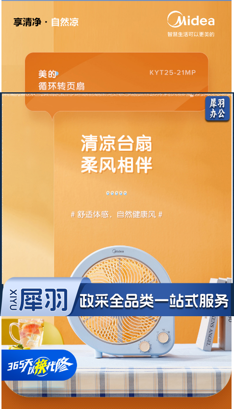 美的(Midea)KYT25-21MP 办公室迷你小风扇学生宿舍节能定时转页扇五叶台式电风扇家用低噪
