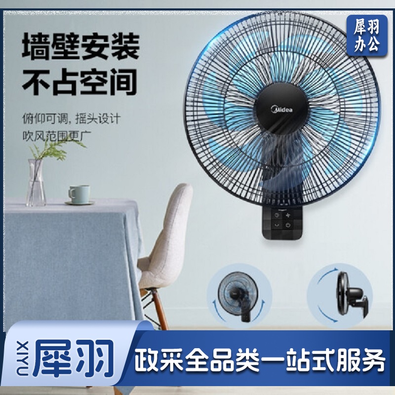 美的电风扇壁扇家用壁挂式挂墙壁摇头工业电扇 7叶曜石黑遥控款FWA35WAR 壁挂电风扇