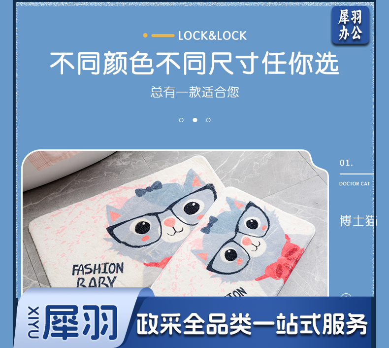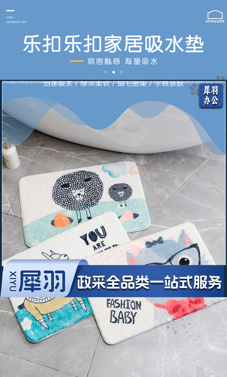 乐扣乐扣 吸水地垫门垫卫浴速干浴室防滑垫进门家用脚垫门口卫生间垫子 40*60cm