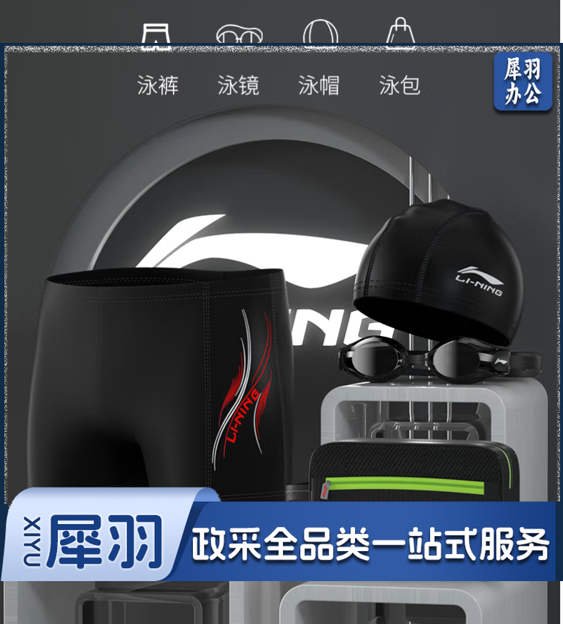 李宁(LI-NING)泳裤泳镜泳帽收纳包套装 时尚大气游泳装备LSJK333 黑 L 近视款200度
