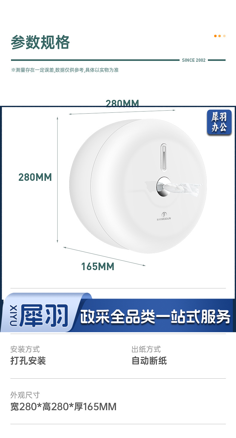 莫顿(MODUN)M-5922 壁挂式大盘卷纸盒商用免打孔 卫生间中心抽纸盒厕所纸巾盒 .