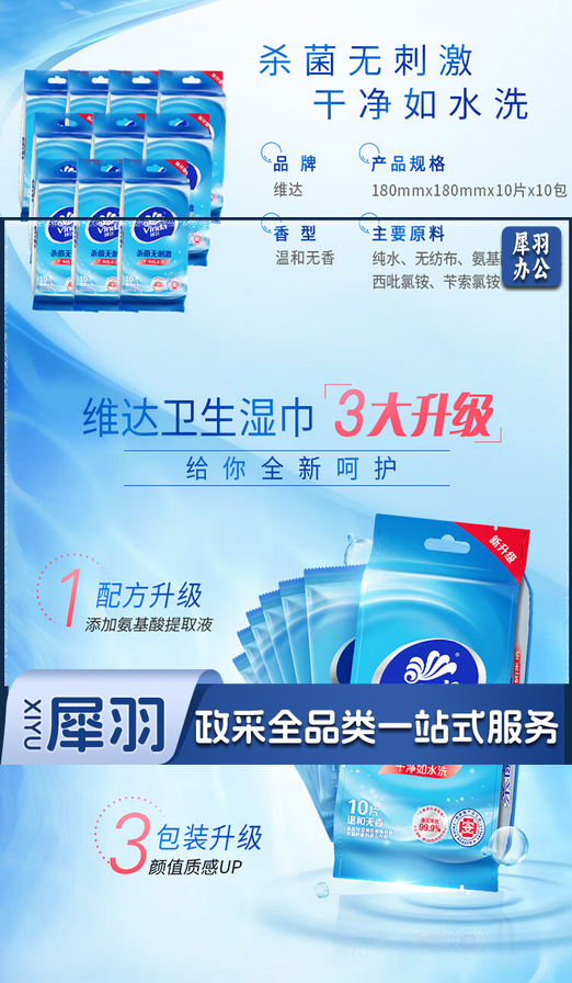 维达(Vinda)湿巾【赵丽颖推荐】湿纸巾杀菌湿巾纸10片*10包 湿巾小包独立装