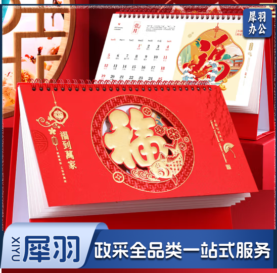 红色台历2025年蛇年月历计划本式大格子日历桌面摆件订制大号喜庆日历礼品定制企业广告logo 福到万家