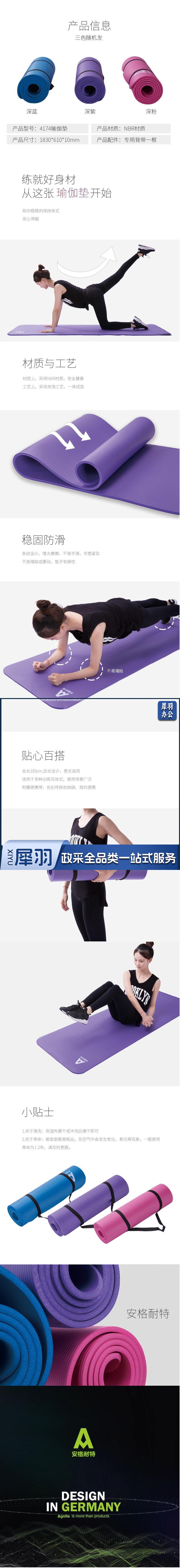 安格耐特F4174瑜伽垫1830*610*10mm(混色)