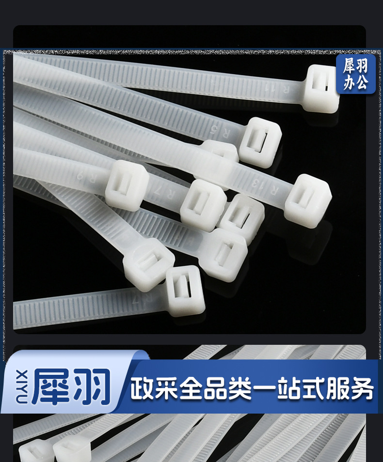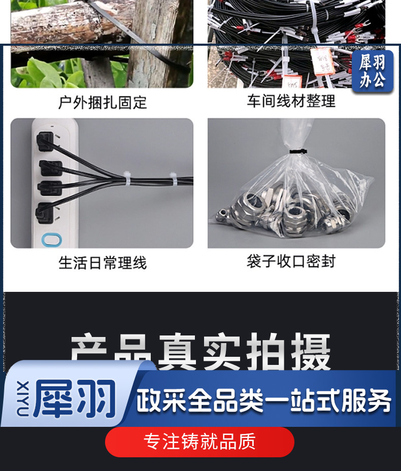 尼龙扎带大中小号黑色白色易拉捆绑带塑料扎带束线带(30cm*100根)