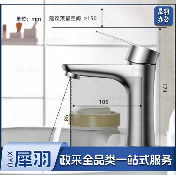 荣事达(Royalstar)面盆水龙头冷热304不锈钢浴室卫生间水龙头洗脸洗手盆龙头R011101-CC14169